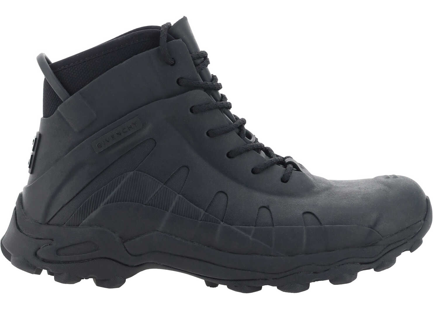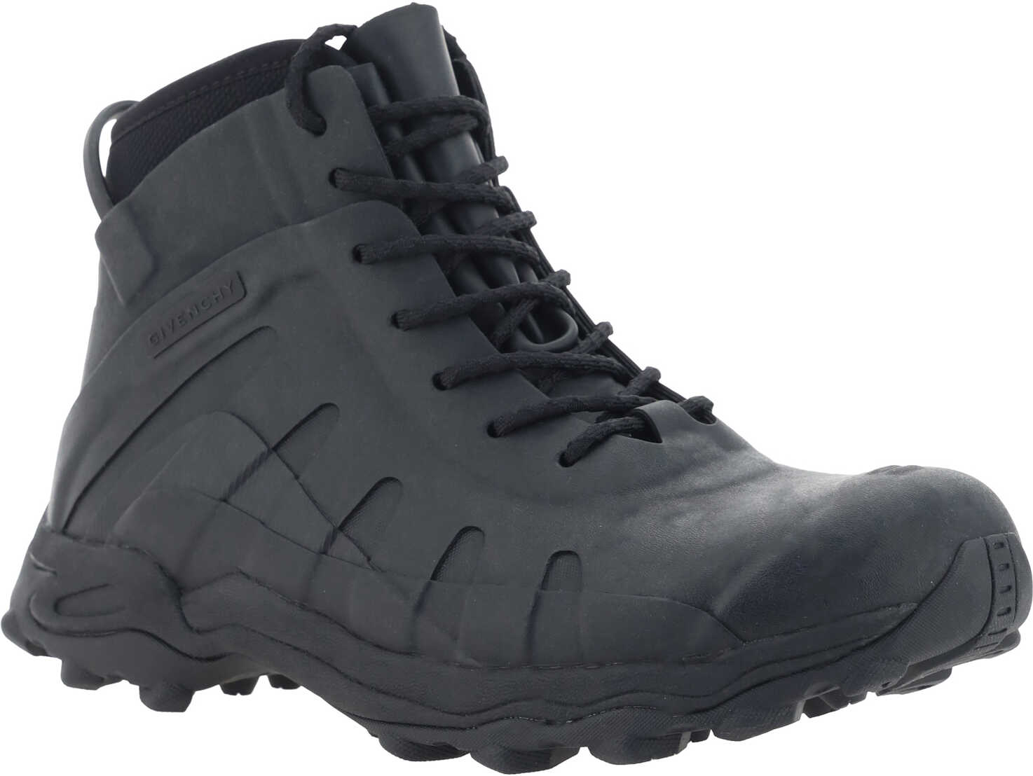 Ankle Boots by Givenchy, round toe, lace-up front closure, iconic logo on side panels and contrasting back, knurled platform sole.