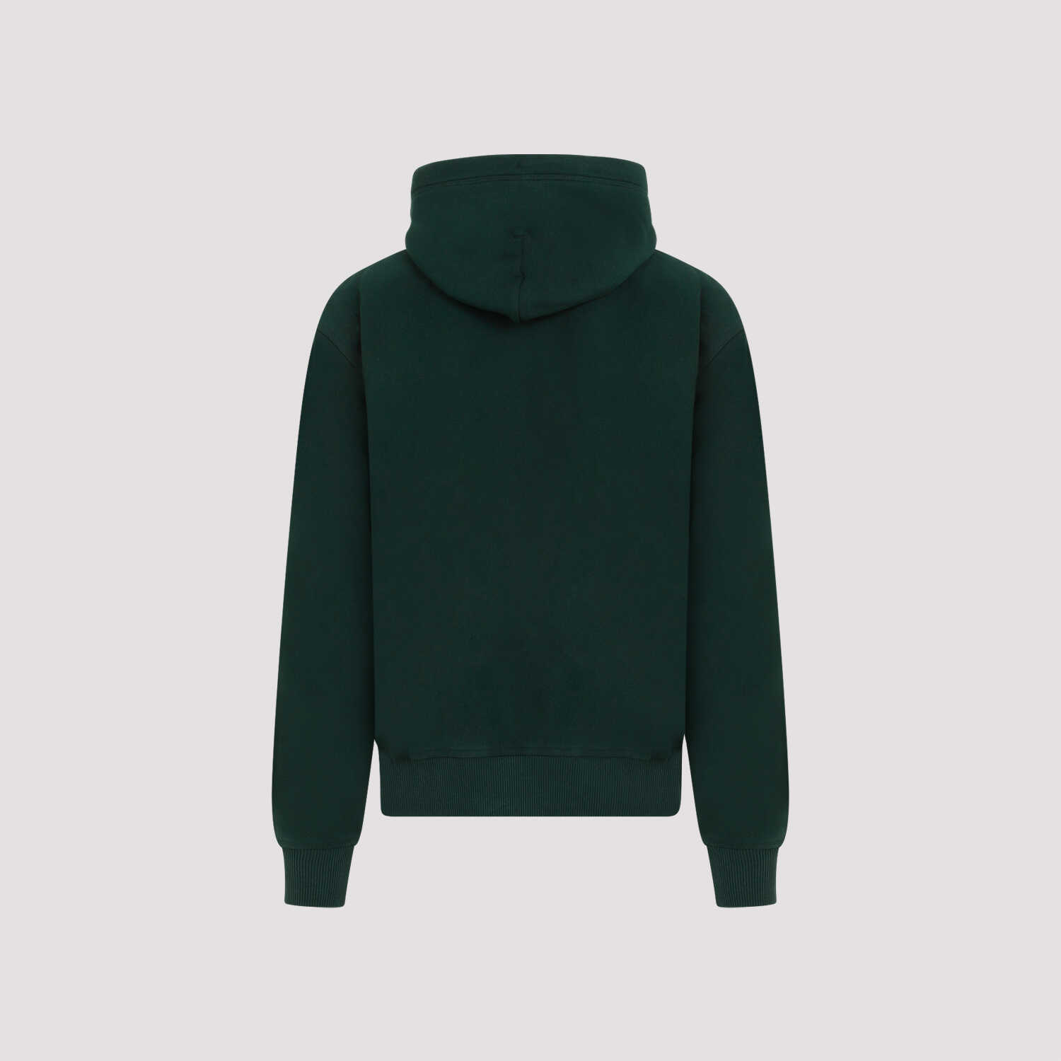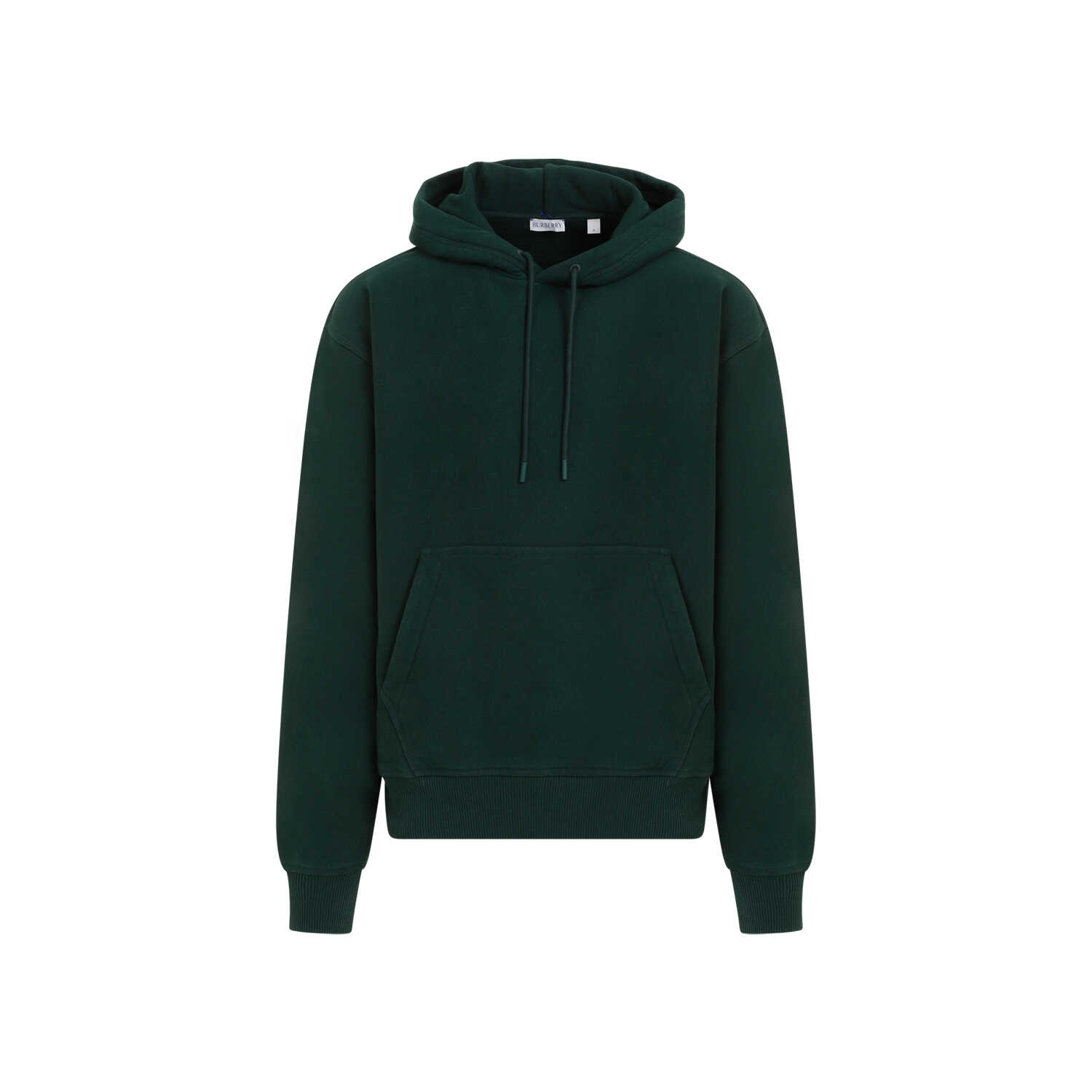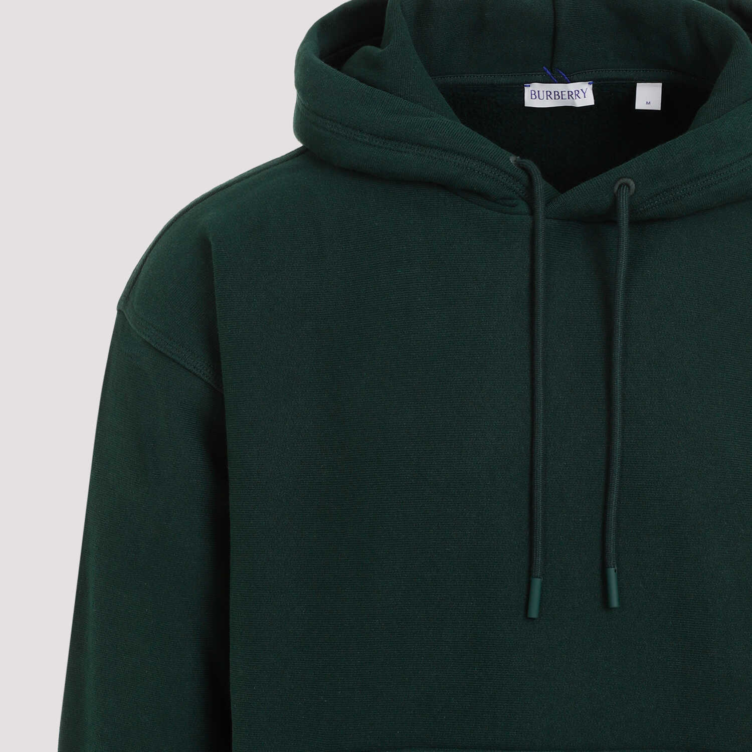 Burberry Ivy Green Cotton Hoodie. Pure ivy green cotton hoodie, adjustable tonal hood, front kangaroo pockets, long sleeves, ribbed cuffs and hem, straight hem.
