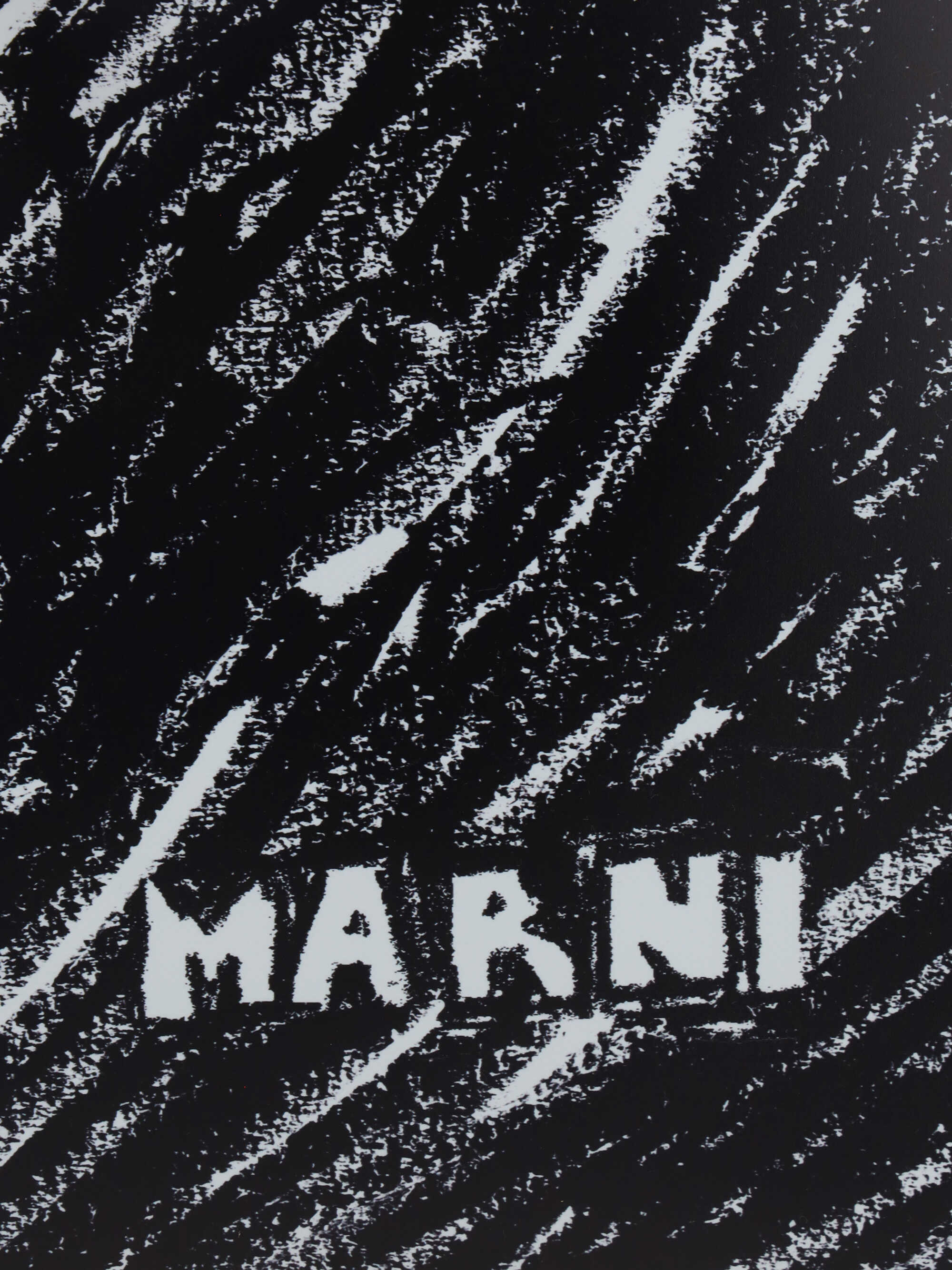 Hand Bag by Marni, tote model, double flat top handle, leather keychain detail applied at the base of the handle, single compartment, iconic brand signature printed on the front in a design style.