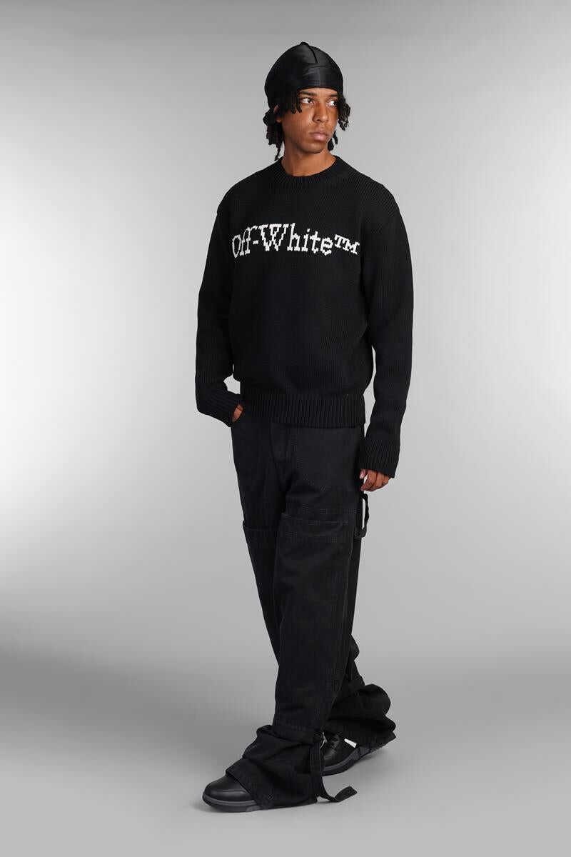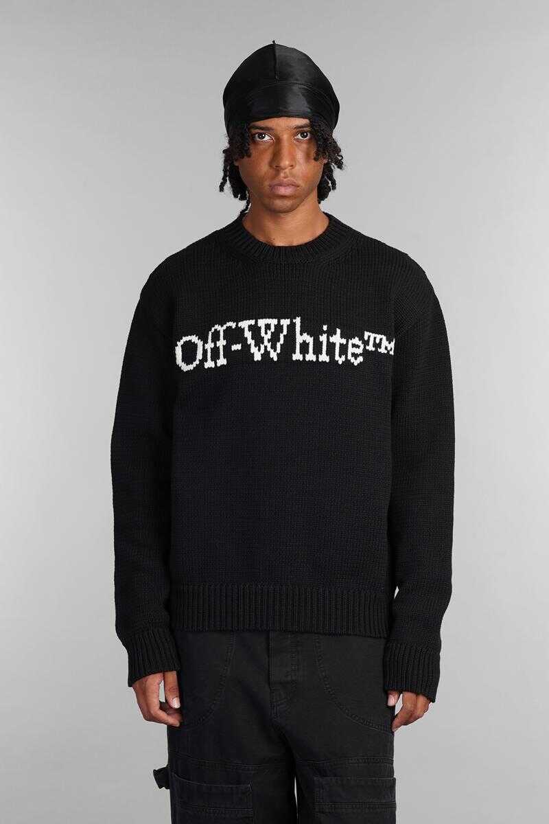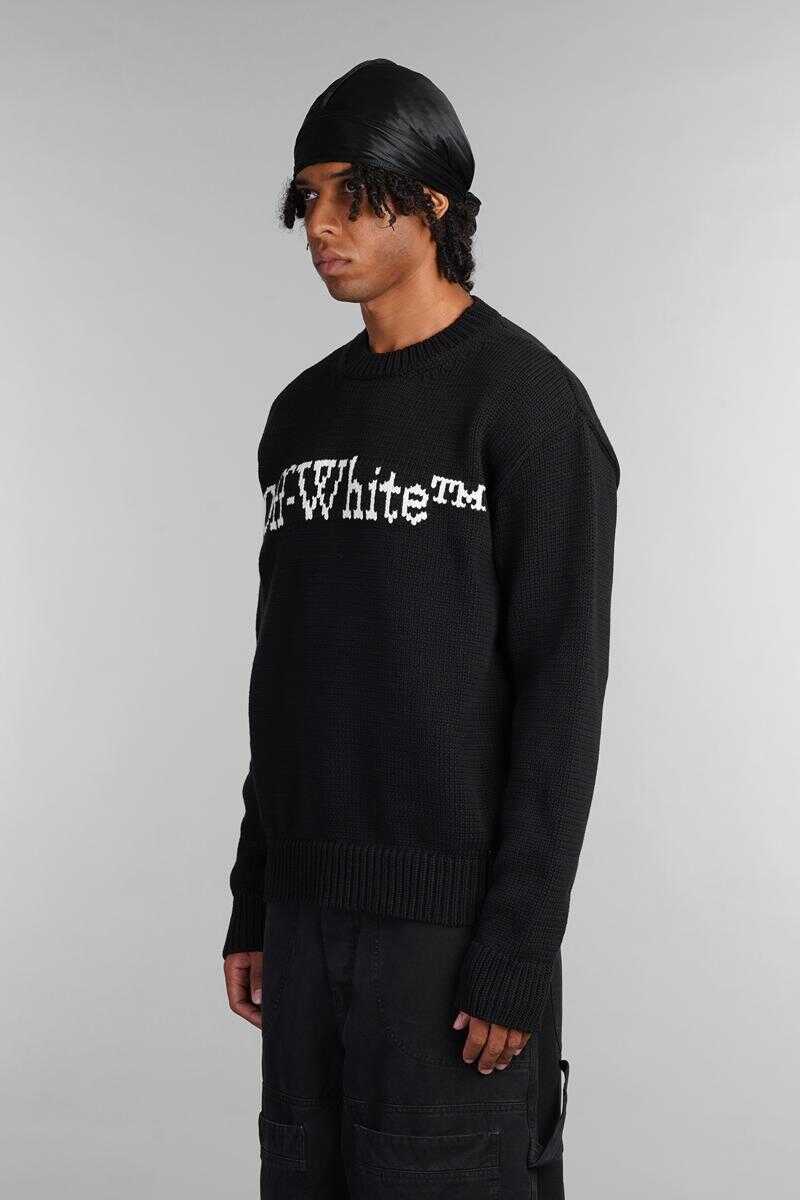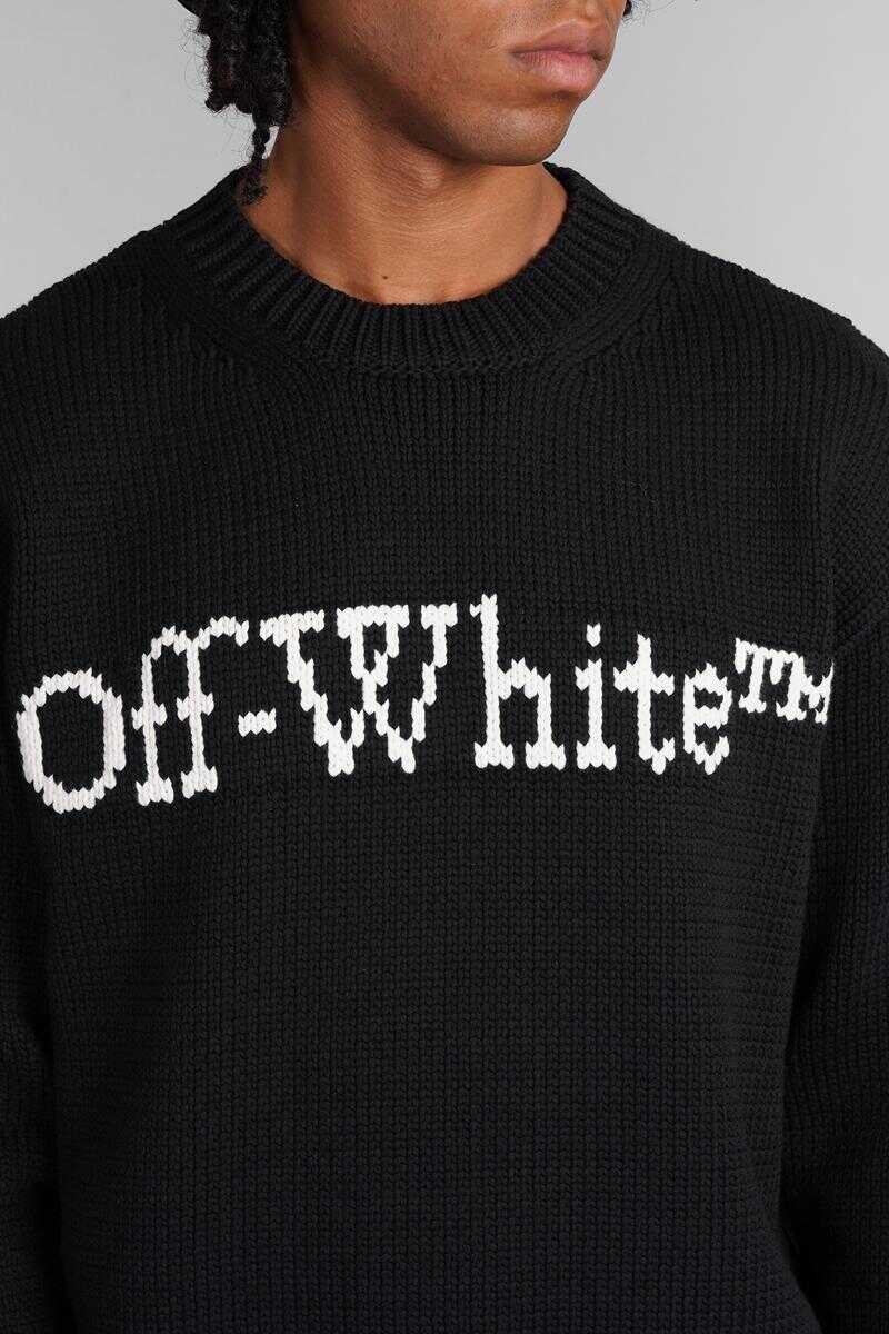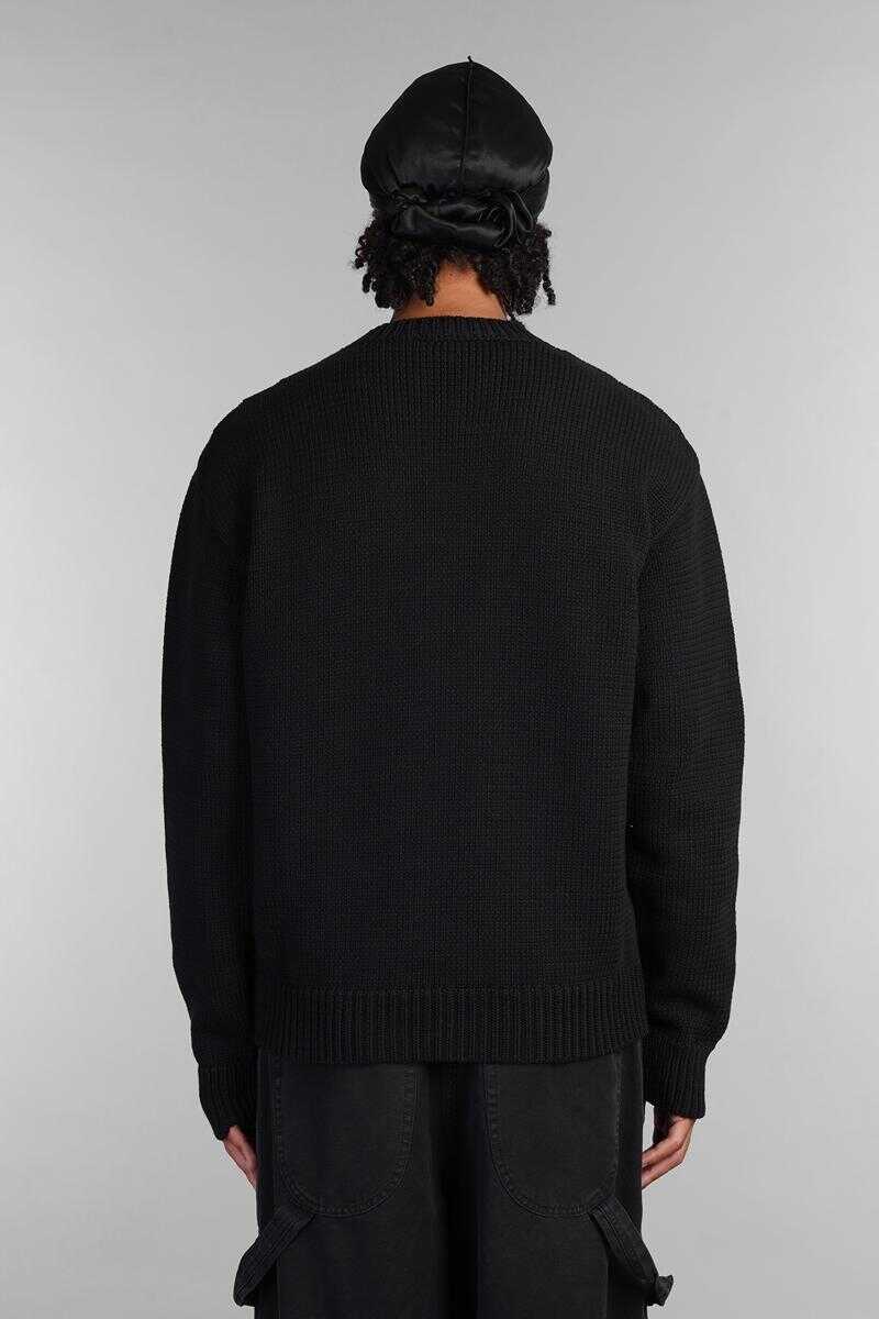 Knitwear in black cotton, round neck, long sleeves, embroidered logo on front, knitted rib cuffs and collar, rib hem, 62% cotton, 38% polyamide, Made in Italy