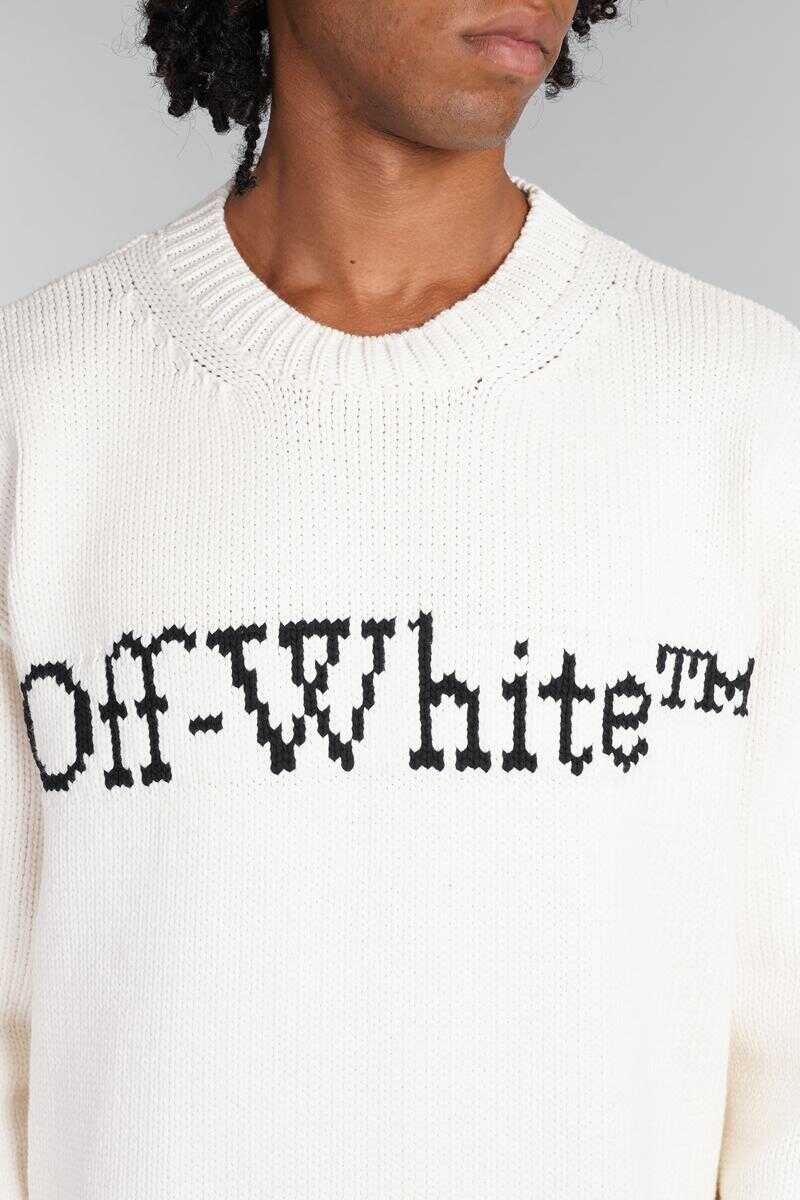 Knitwear in beige cotton, round neck, long sleeves, embroidered logo on front, knitted rib cuffs and collar, rib hem, 62% cotton, 38% polyamide, Made in Italy