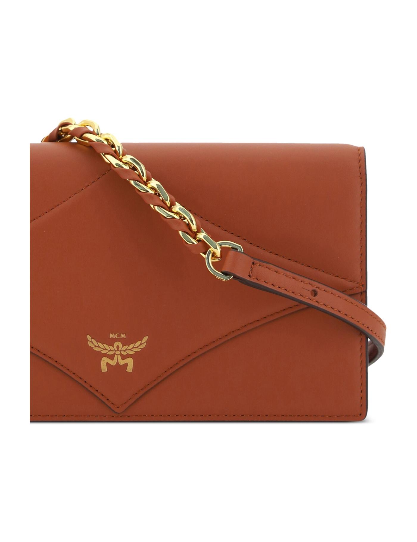 - detachable leather and chain-link shoulder strap