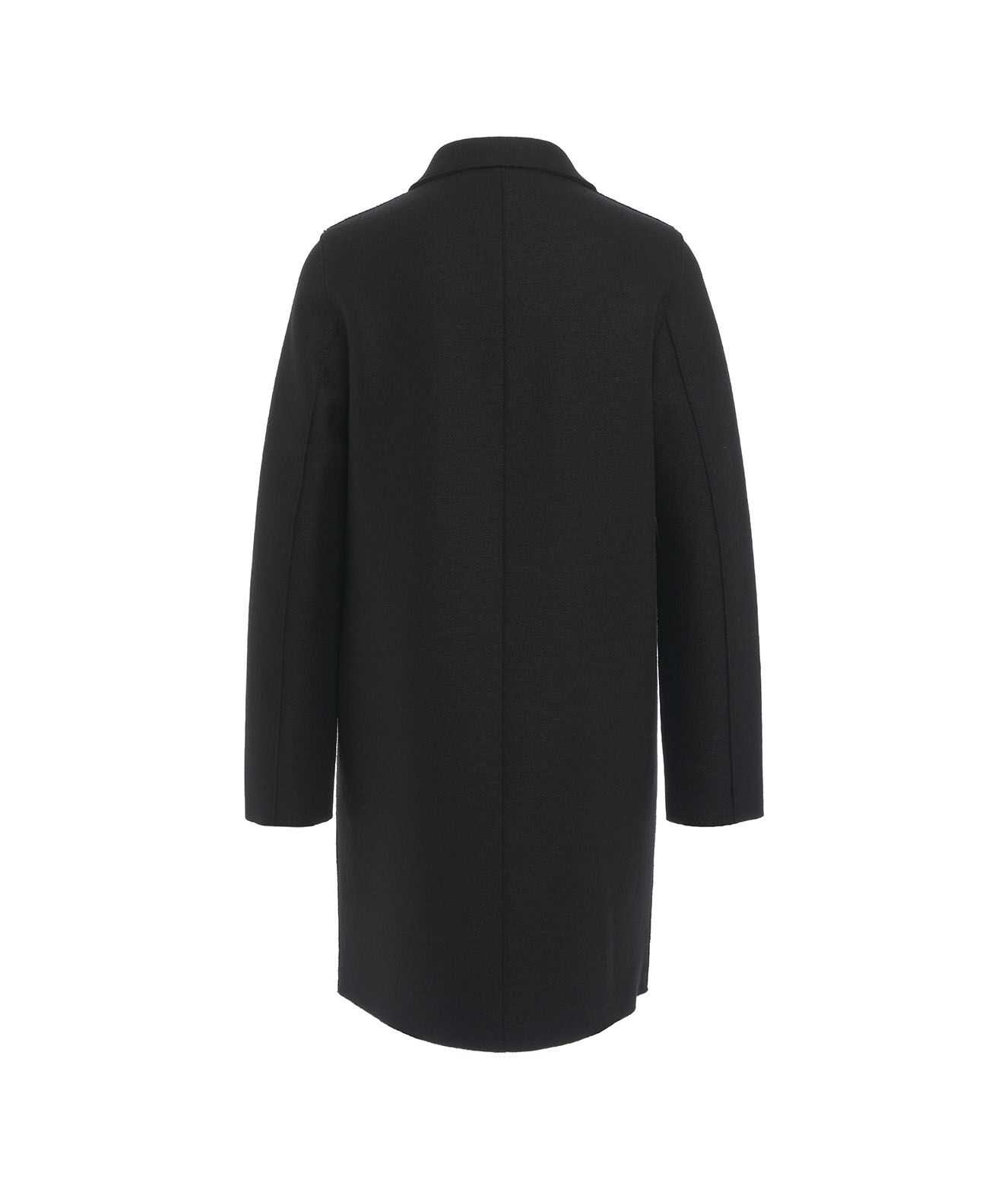 Stay stylish and warm in this elegant black single-breasted coat made from high-quality pressed wool. Dry clean recommended. Featuring a classic design, this coat is perfect for women who want to make a fashion statement. Crafted from 100% WV by the renowned brand HARRIS WHARF LONDON. Get yours today!