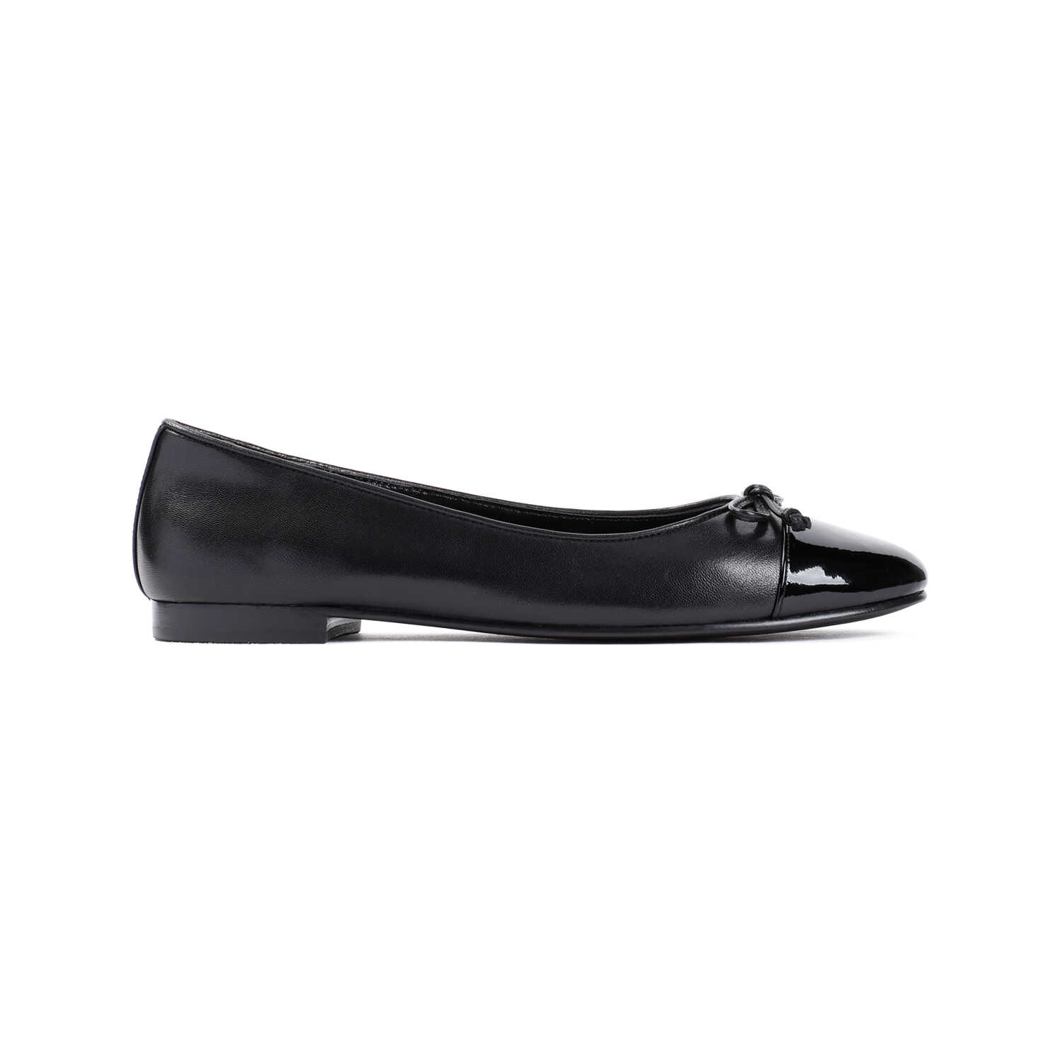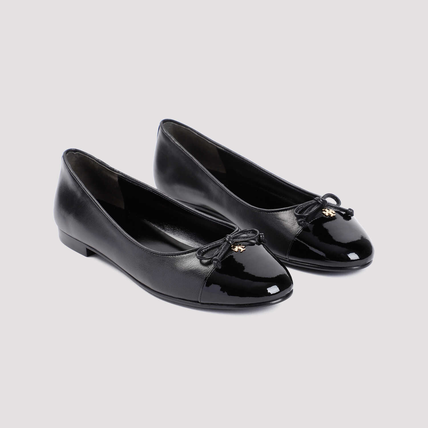 Tory Burch Perfect Black Nappa Leather Bow Ballet. Pure perfect black nappa leather ballet shoes, round and patent calf leather toe, top bow detail, slip-on style, flat design, tonal sole.