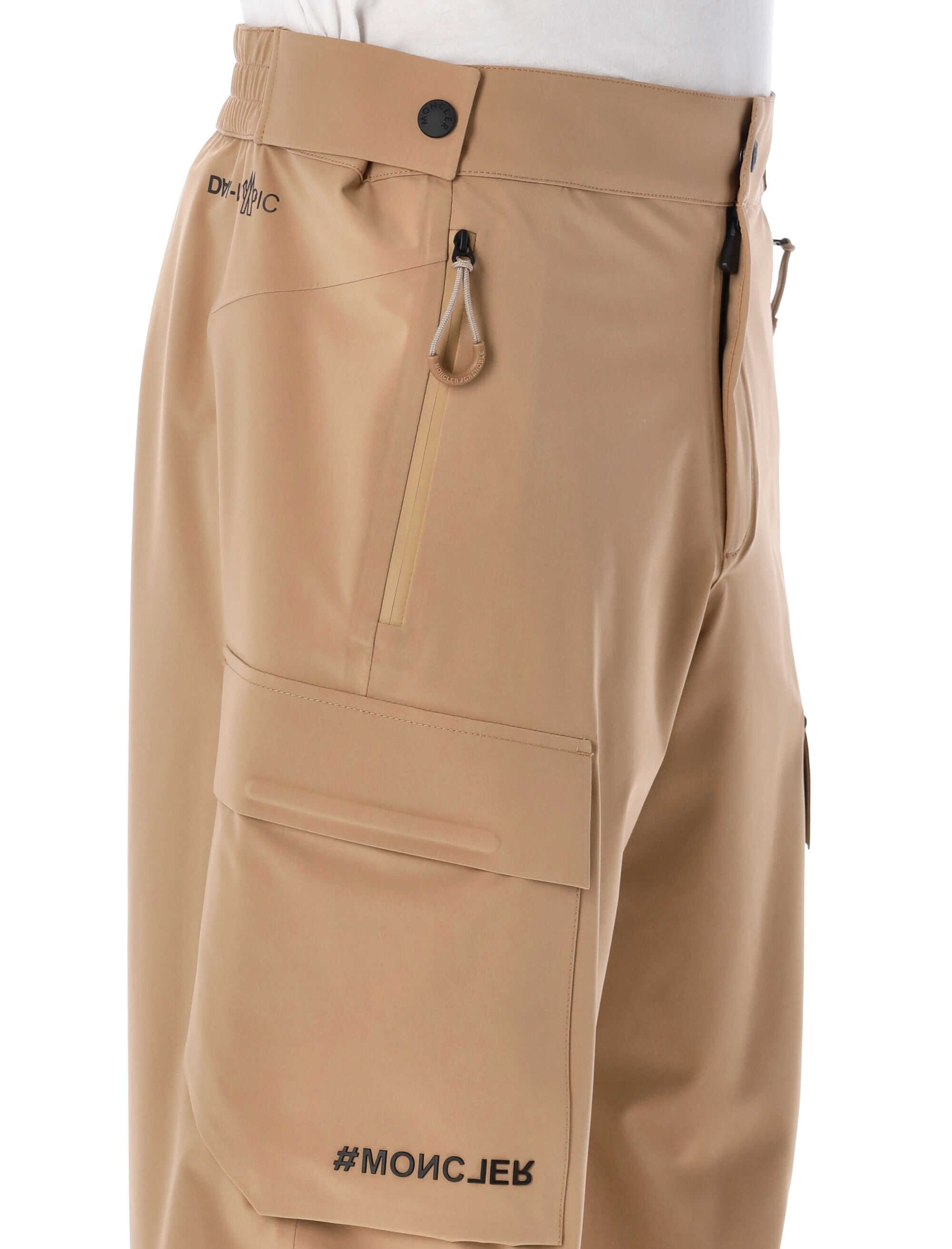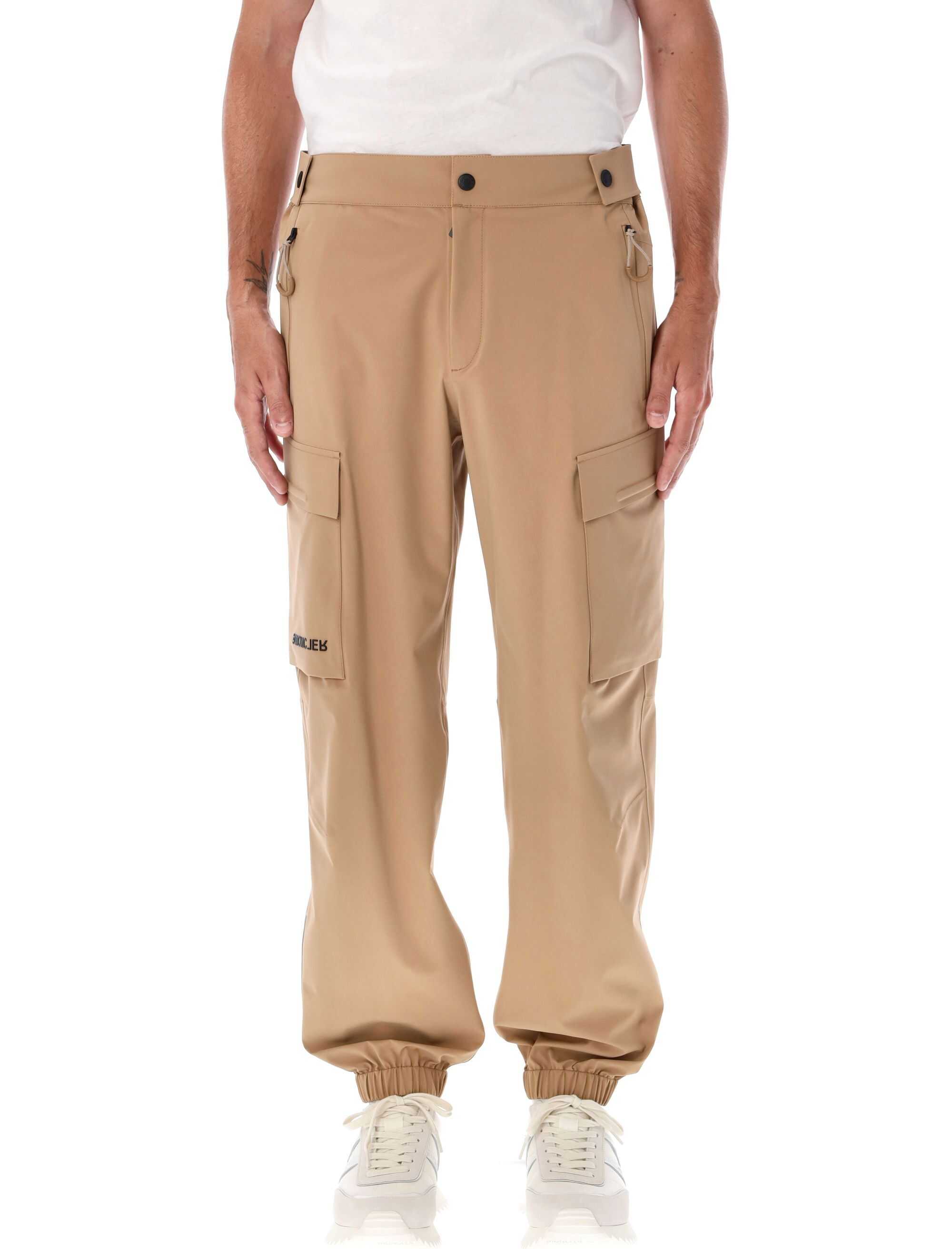 Elevate your style with these stylish BEIGE cargo jogger pants from MONCLER GRENOBLE. Made with durable nylon fabric, featuring a relaxed fit, front button closure, zip fly, side pockets with zippers, large cargo pockets, and elasticated cuffs. Perfect for a modern and urban look. Model is 1.90m and wears size L.