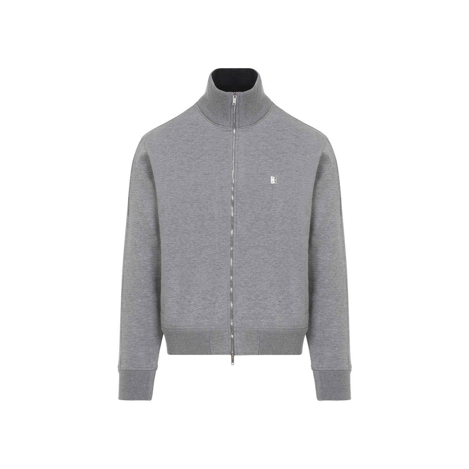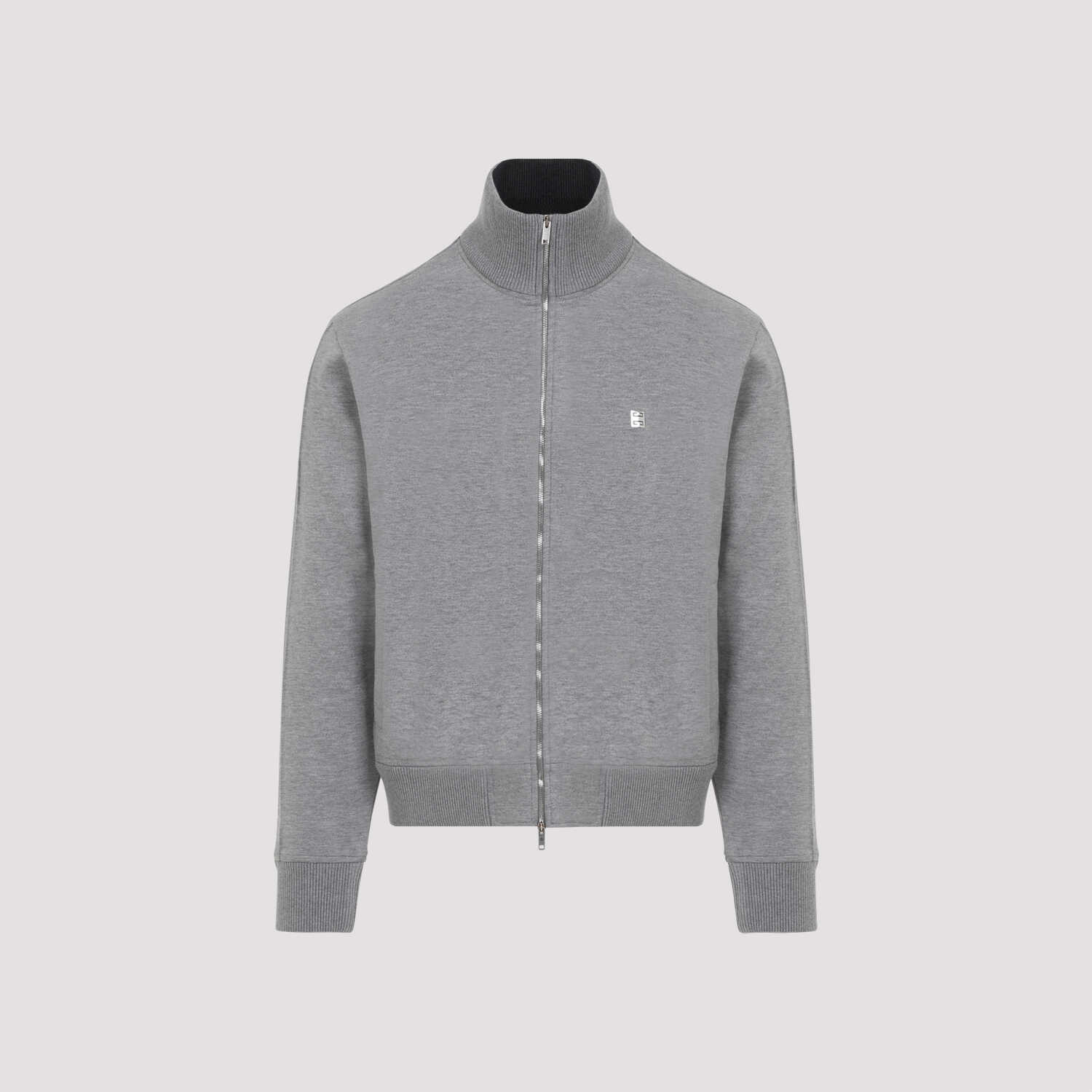 Givenchy Zip Through Light Grey Cotton Sweatshirt. Light grey cotton, standing collar, two-way zip closure on the front, silver-toned metal logo on the chest, front vertical pockets, long sleeves, ribbed edges.