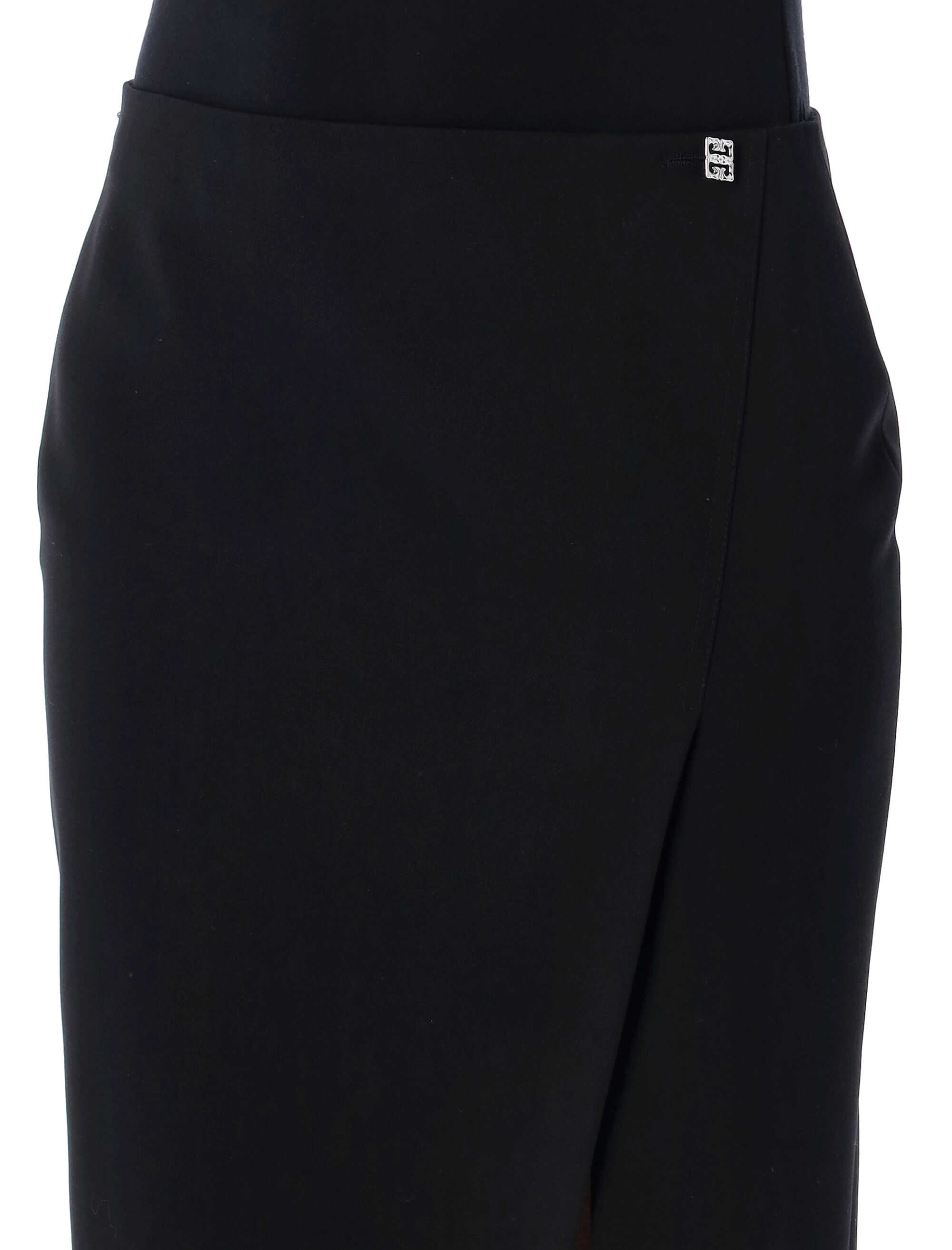 Elevate your style with this chic black longuette skirt by Givenchy. Made from luxurious 100% wool, it features a slim, pencil fit and an asymmetric front slit for a modern touch. The discreet side closure and subtle Givenchy logo detail add to its sophisticated appeal. Perfect for any occasion, this mid-length skirt is a must-have for every fashion-forward woman. Embrace elegance with Givenchy!