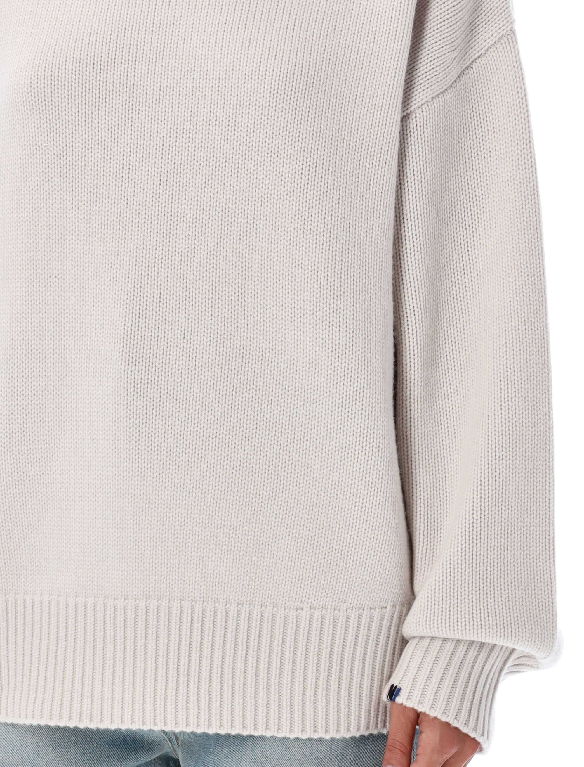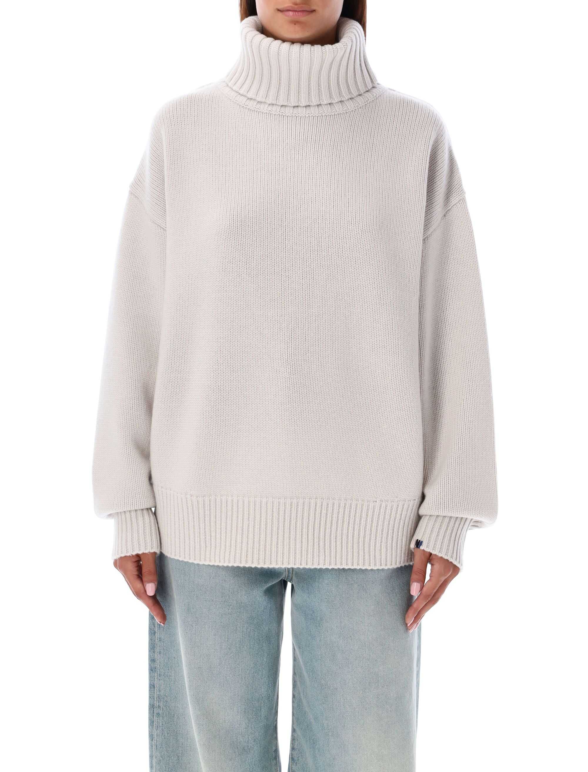 Stay cozy and stylish in this CHALK Oversized extra sweater by EXTREME CASHMERE. Made of 100% cashmere, this sweater features a high ribbed collar, dropped shoulder, and ribbed cuffs and hem. Perfect for a chic and comfortable look!
