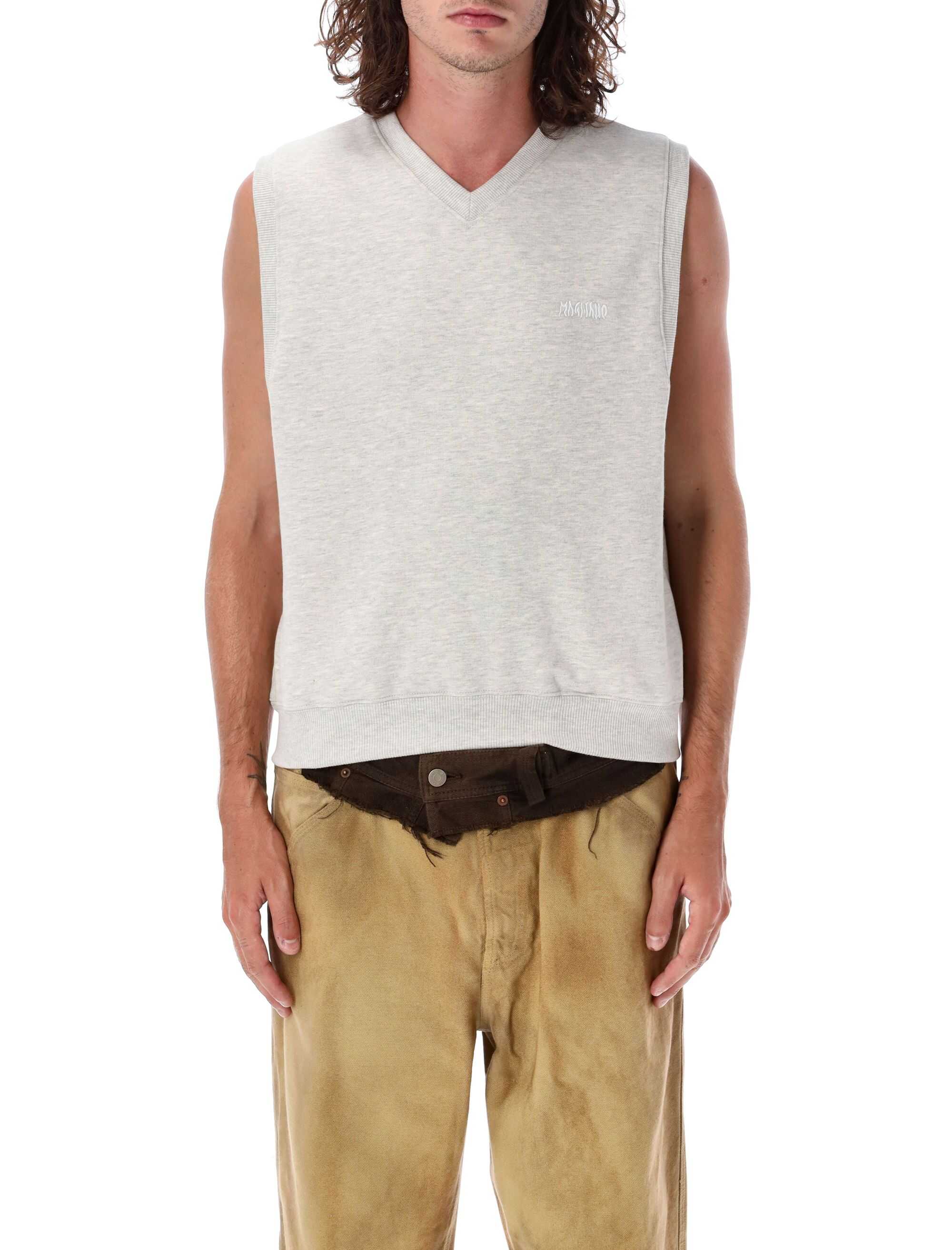 Stay stylish and comfortable with this Grey Mel Mid Vest from Magliano. Made from a soft cotton blend fabric, it features a regular fit, V-neck collar, and an embroidered logo on the chest. Perfect for layering or wearing on its own. Upgrade your wardrobe with this versatile piece.