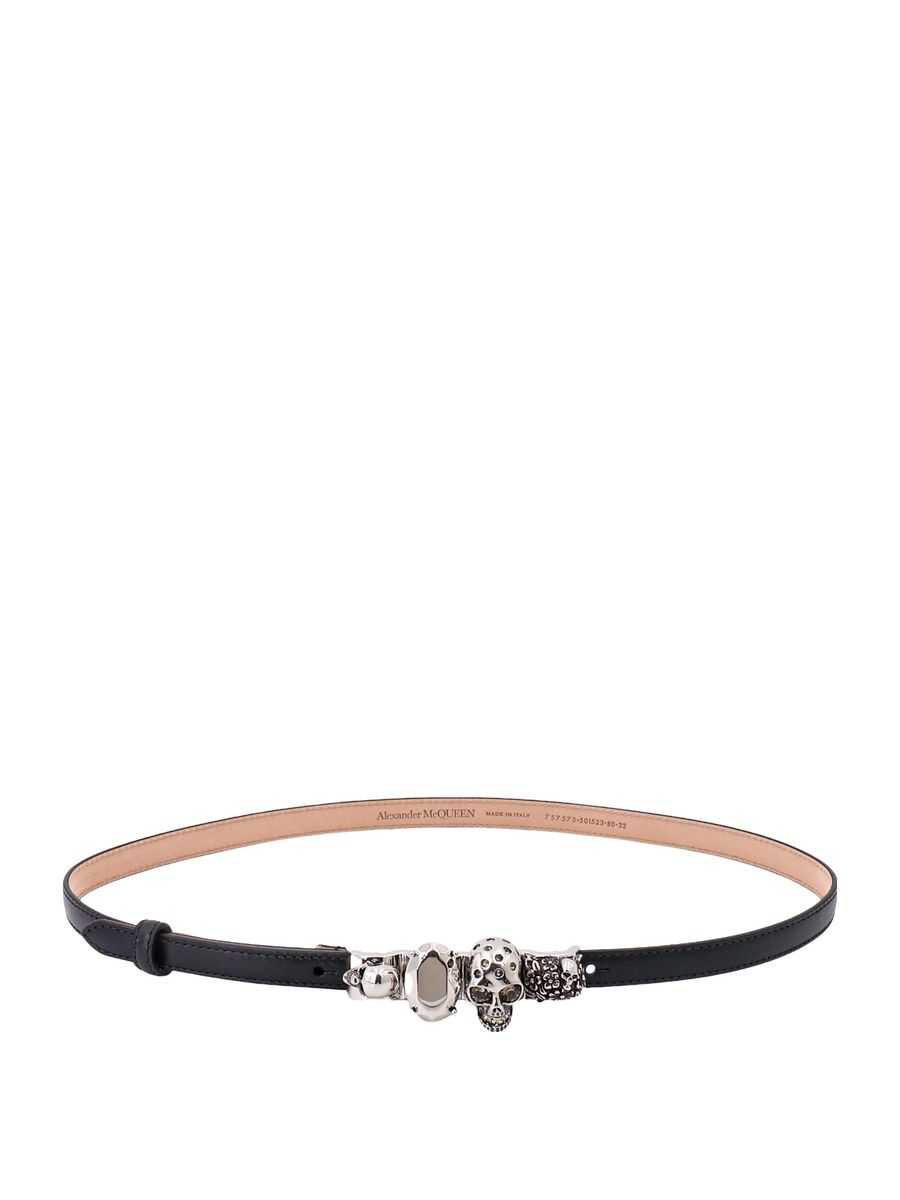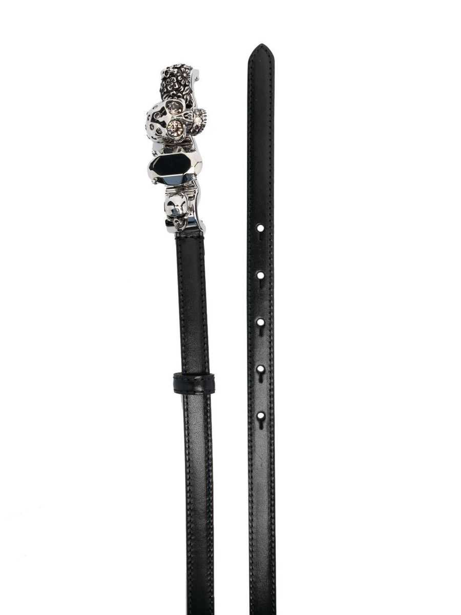 Alexander McQueen's thin belt crafted in black smooth leather. It features adjustable closure with silver-tone metal Knuckle buckle.