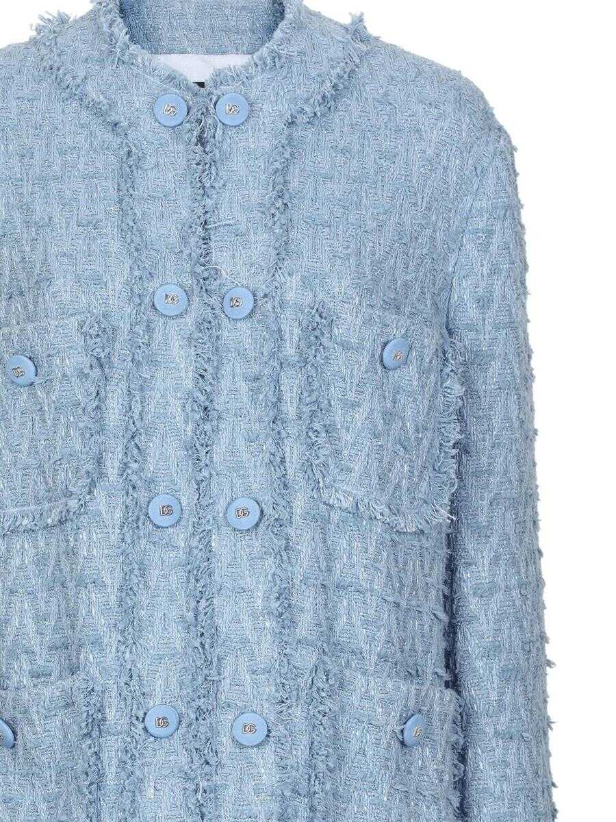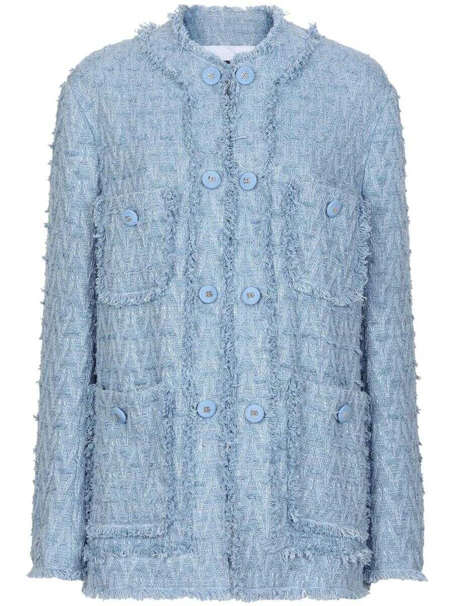 light blue cotton blend textured finish button fastening multiple patch pockets logo-engraved buttons long sleeves straight hem