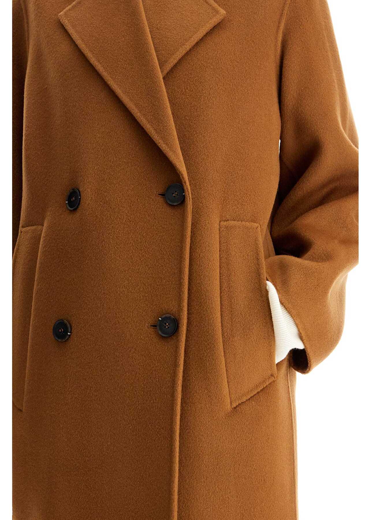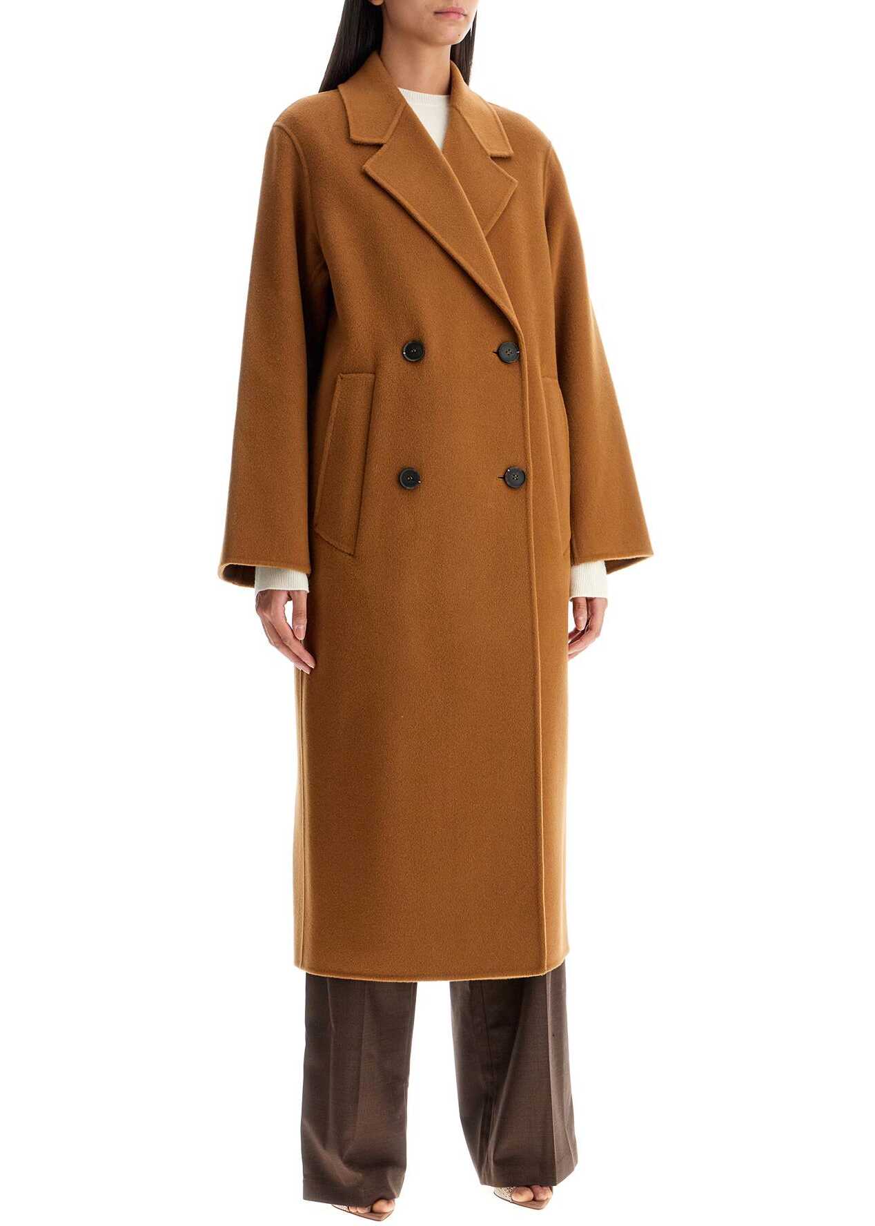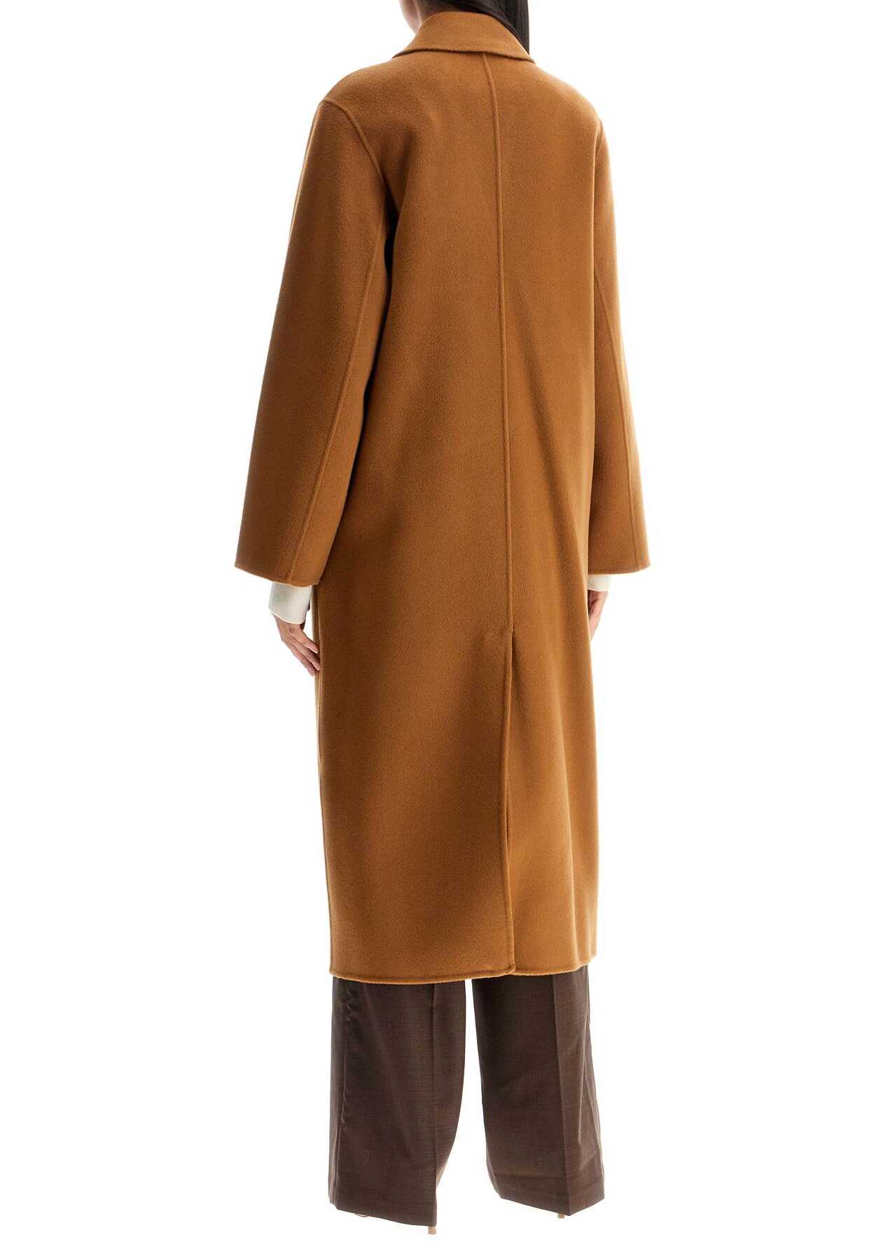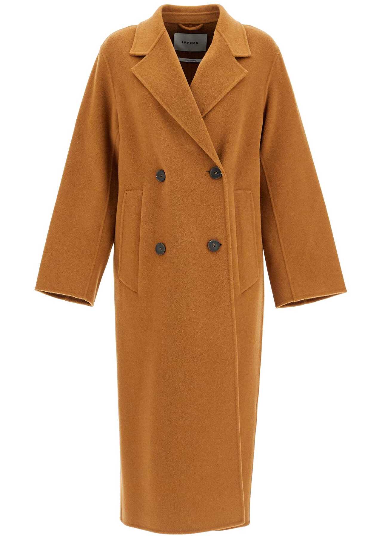 Long coat by Ivy Oak hand stitched in soft RWS certified wool, with double-breasted design and four-button closure. It features notch lapel, side welt pockets and a deep vent at center back. Classic deconstructed cut unlined on the inside. The model is 177 cm tall and wears size DE 34.