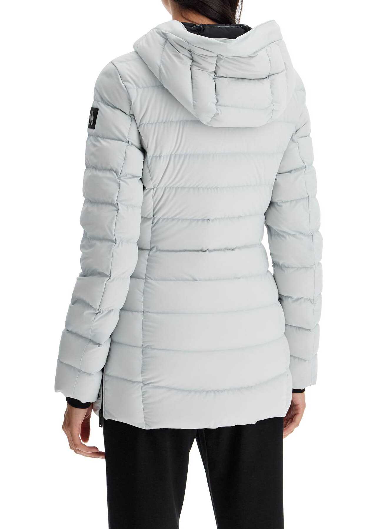 Rockcliff wind-resistant and water-repellent midi puffer jacket by Moose Knuckles, crafted in matte-finish quilted stretch nylon with padding in 90/10 duck down and feathers. It features adjustable hood with elastic drawstring, two-way zipper fastening, side slanted pockets and adjustable side slits with zipper. Embellished with rubberized logo patch on the left sleeve. Lined and equipped with two inner pockets. Slim fit. The model is 177 cm tall and wears size XS.