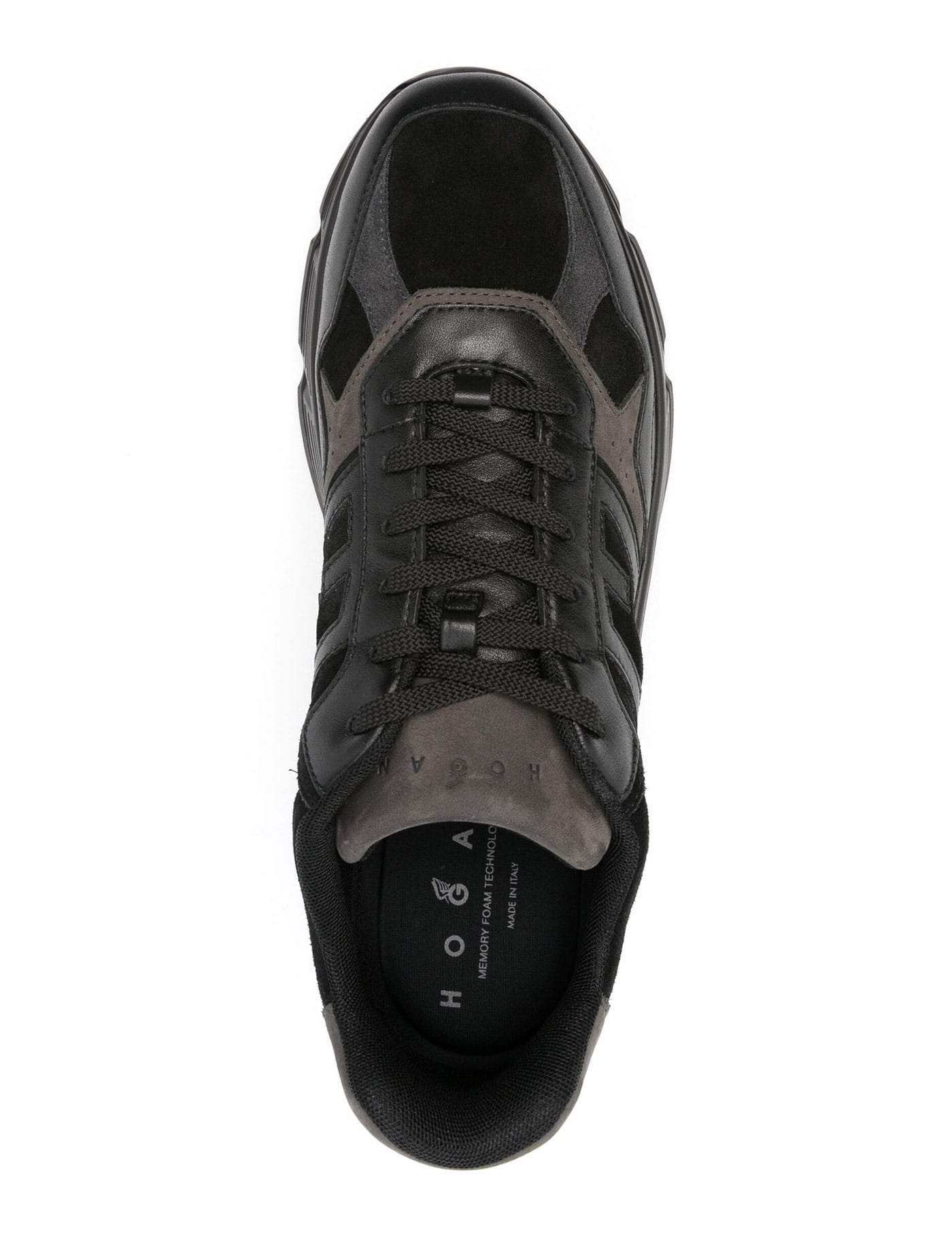 Hogan black Hyperlight sneakers, round toe, leather and suede upper, lateral tone on tone logo, UK SIZE
