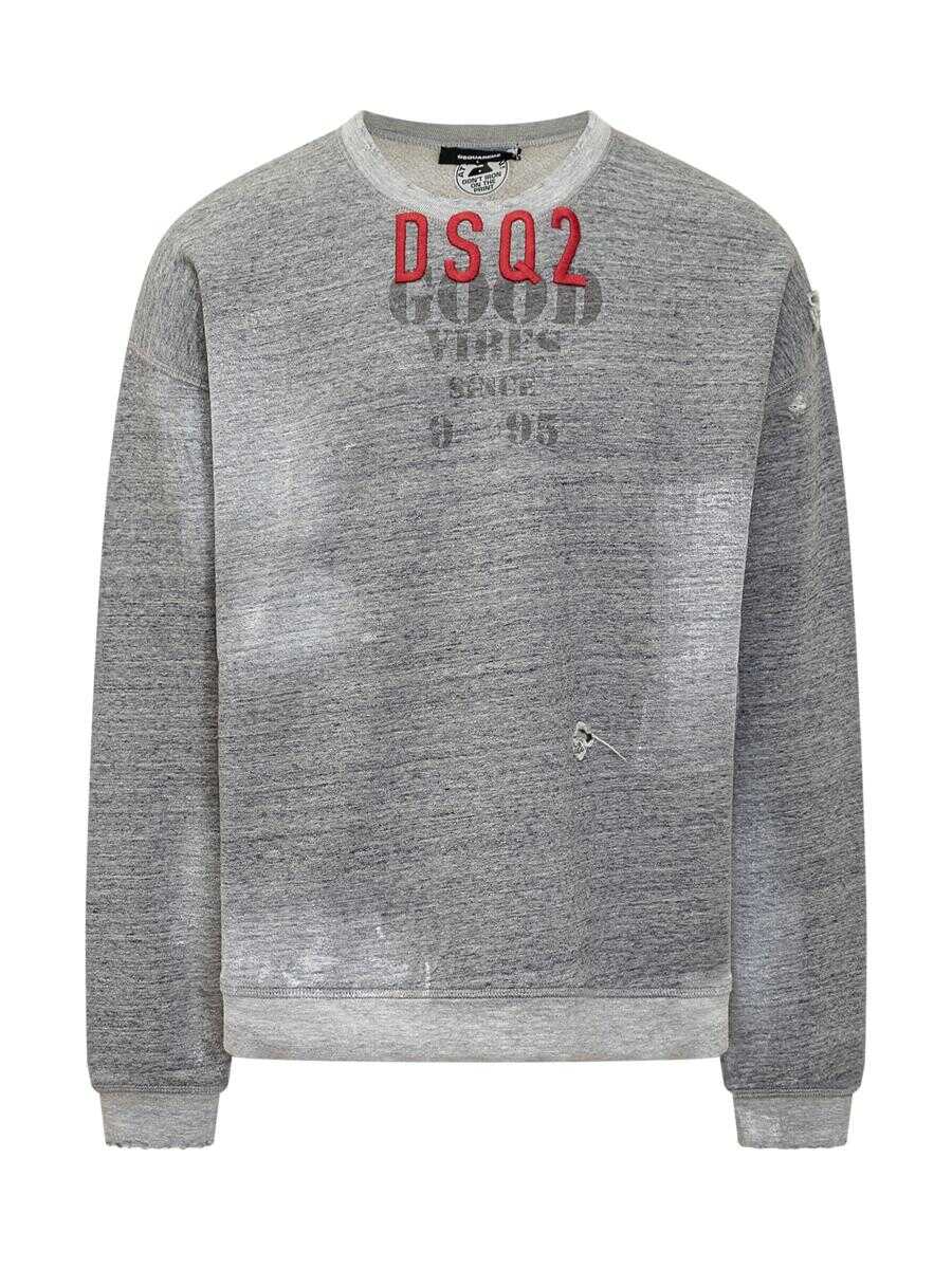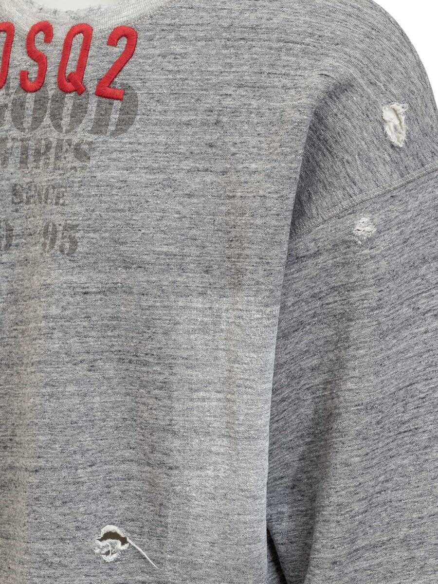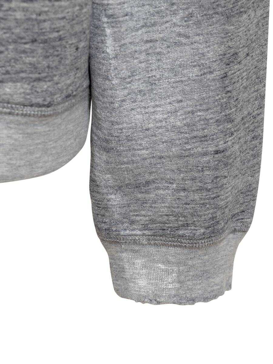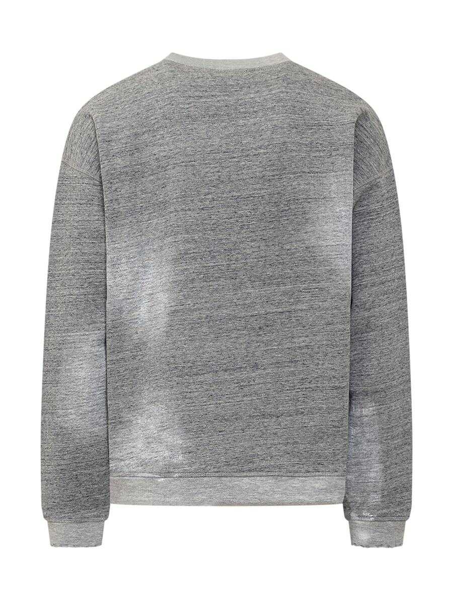 Long-sleeved cotton sweatshirt. Crew neck. Ribbed hems. Embossed embroidered logo on front. Ruined effect on front and cuffs.