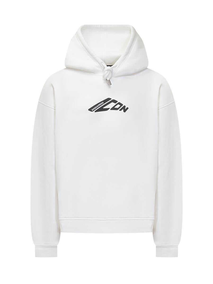 Long-sleeved cotton-blend sweatshirt. Drawstring hood. Ribbed hems. Logo on chest.