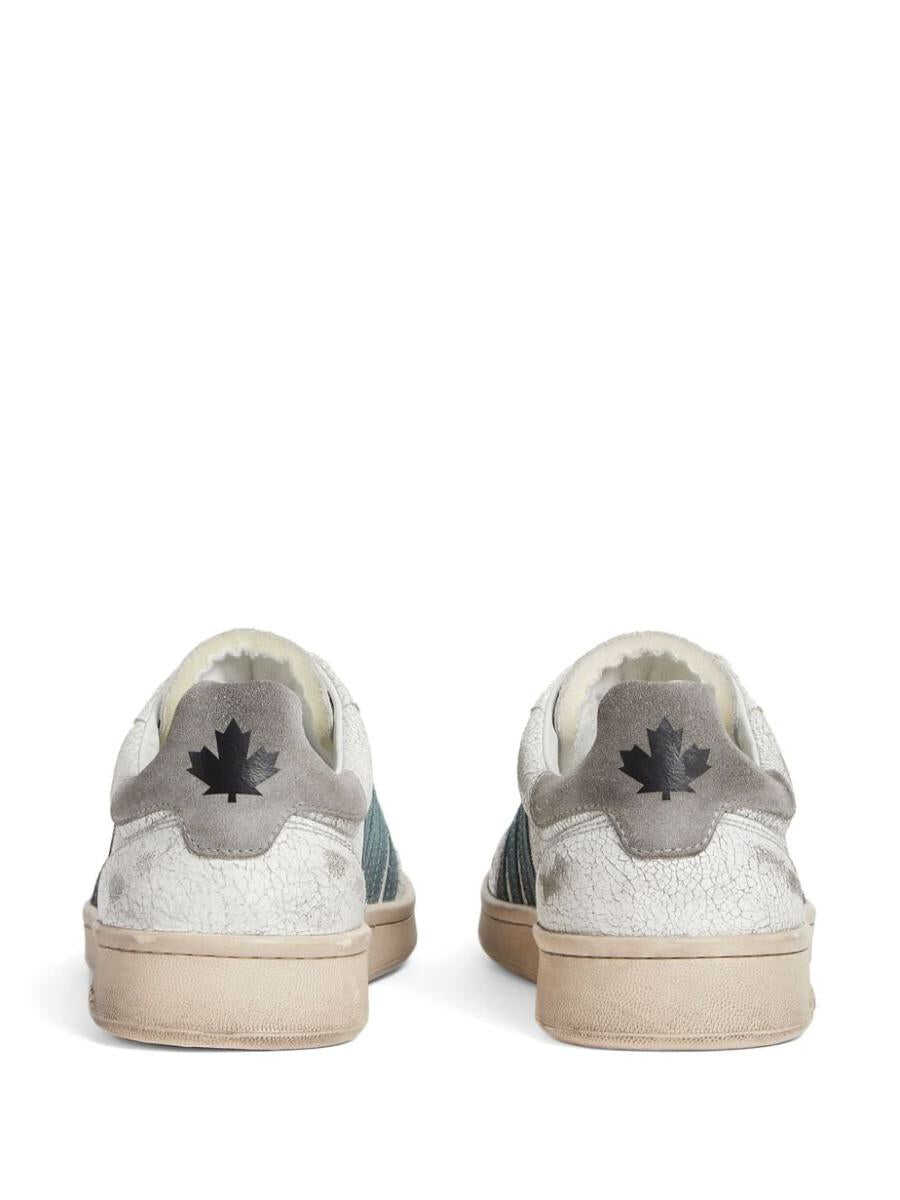 white/blue calf leather distressed finish multi-panel design side stripe detailing decorative stitching logo-print tongue branded insole contrasting heel counter padded ankle almond toe front lace-up fastening flat rubber sole logo at the sole