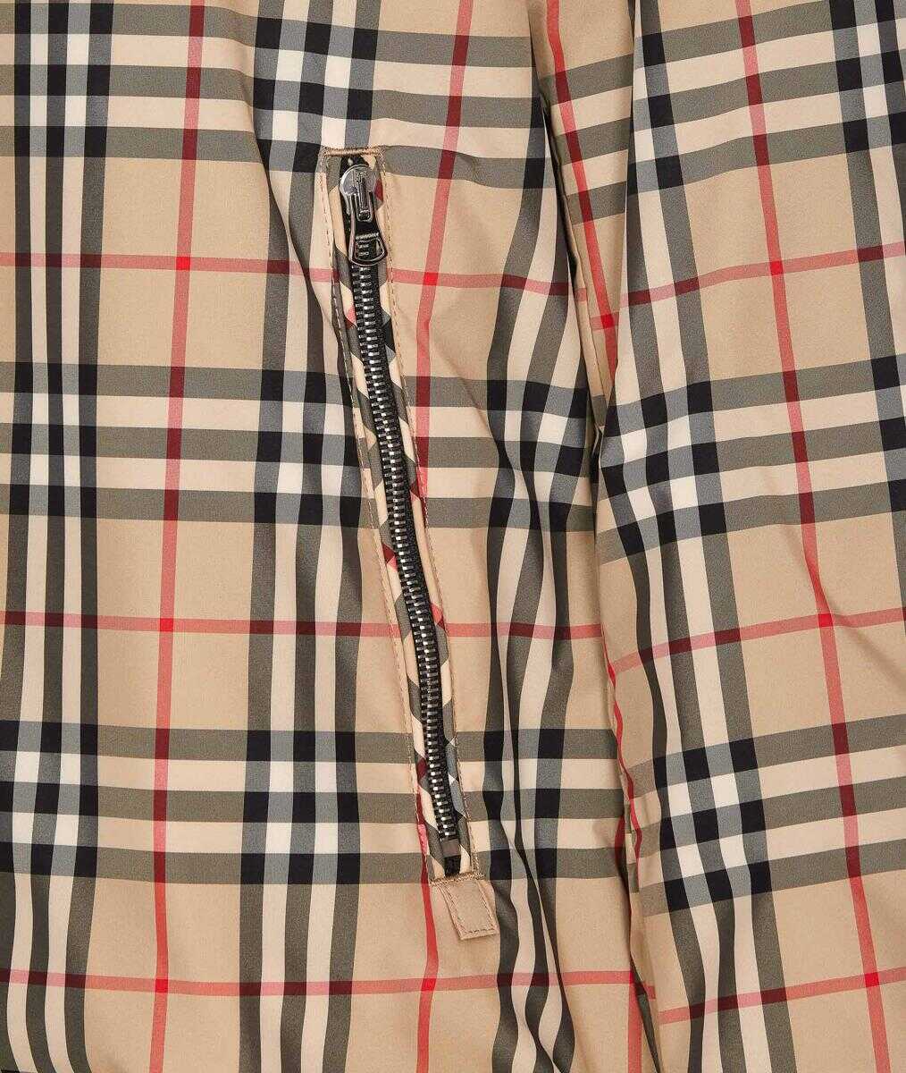 Burberry archive beige jacket, zip closure on the front, long sleeves, hood detail, lateral zip pockets, check motif, one side total black with lateral buttons closure, US SIZE