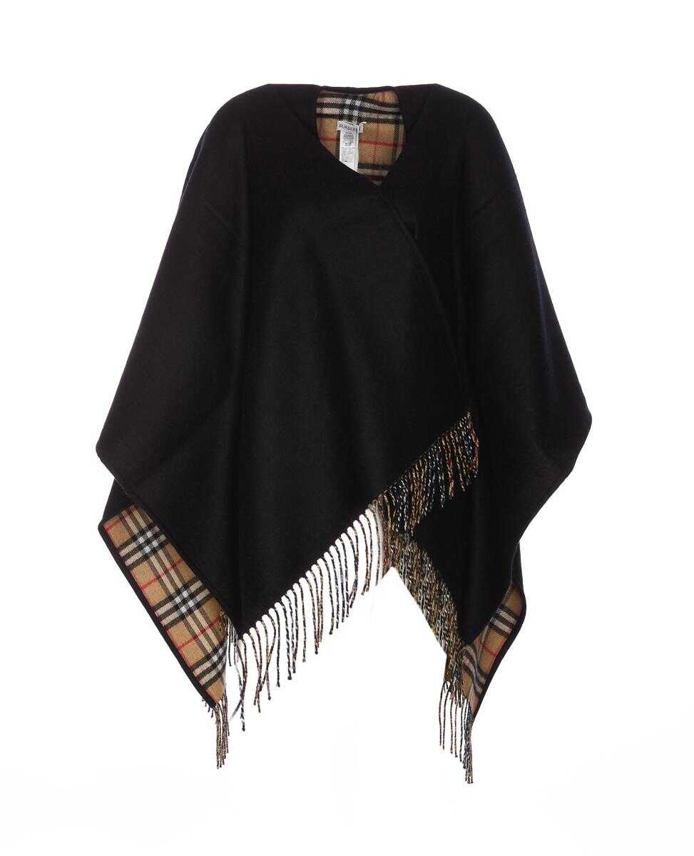 Burberry reversible cape, fringes details, one side with check motif, UNI SIZE