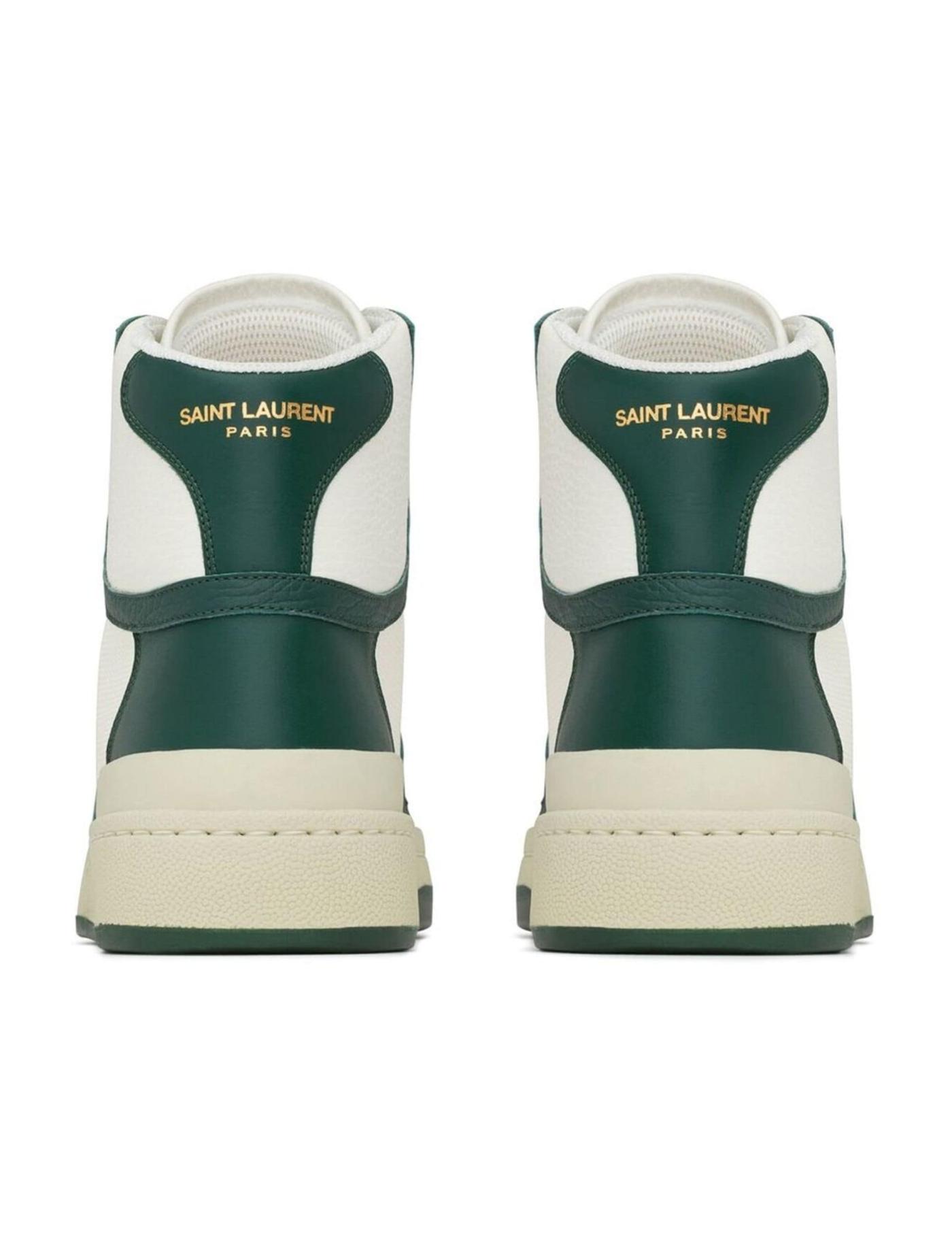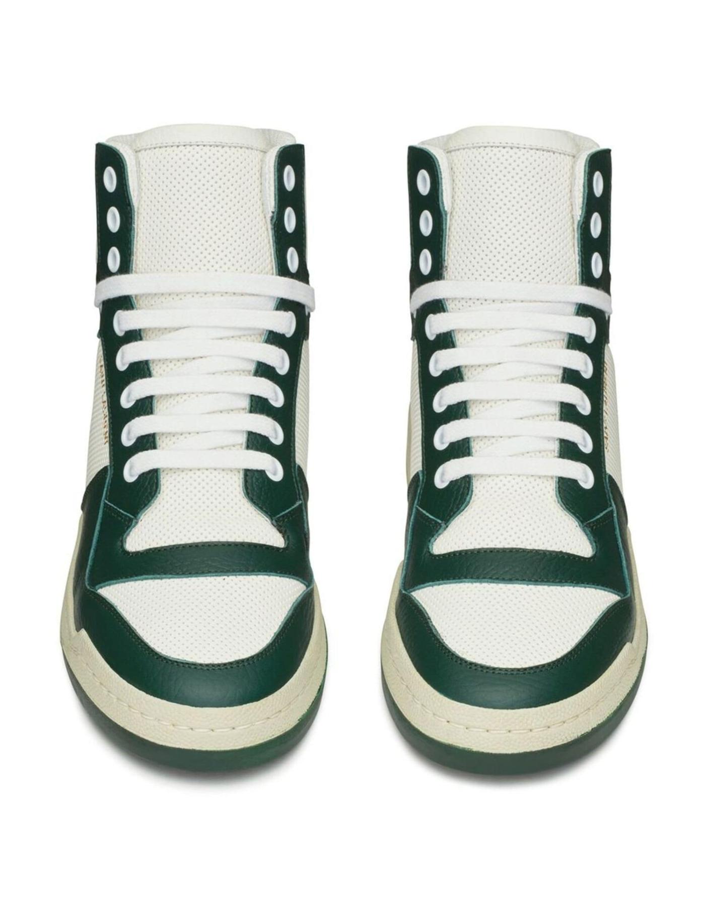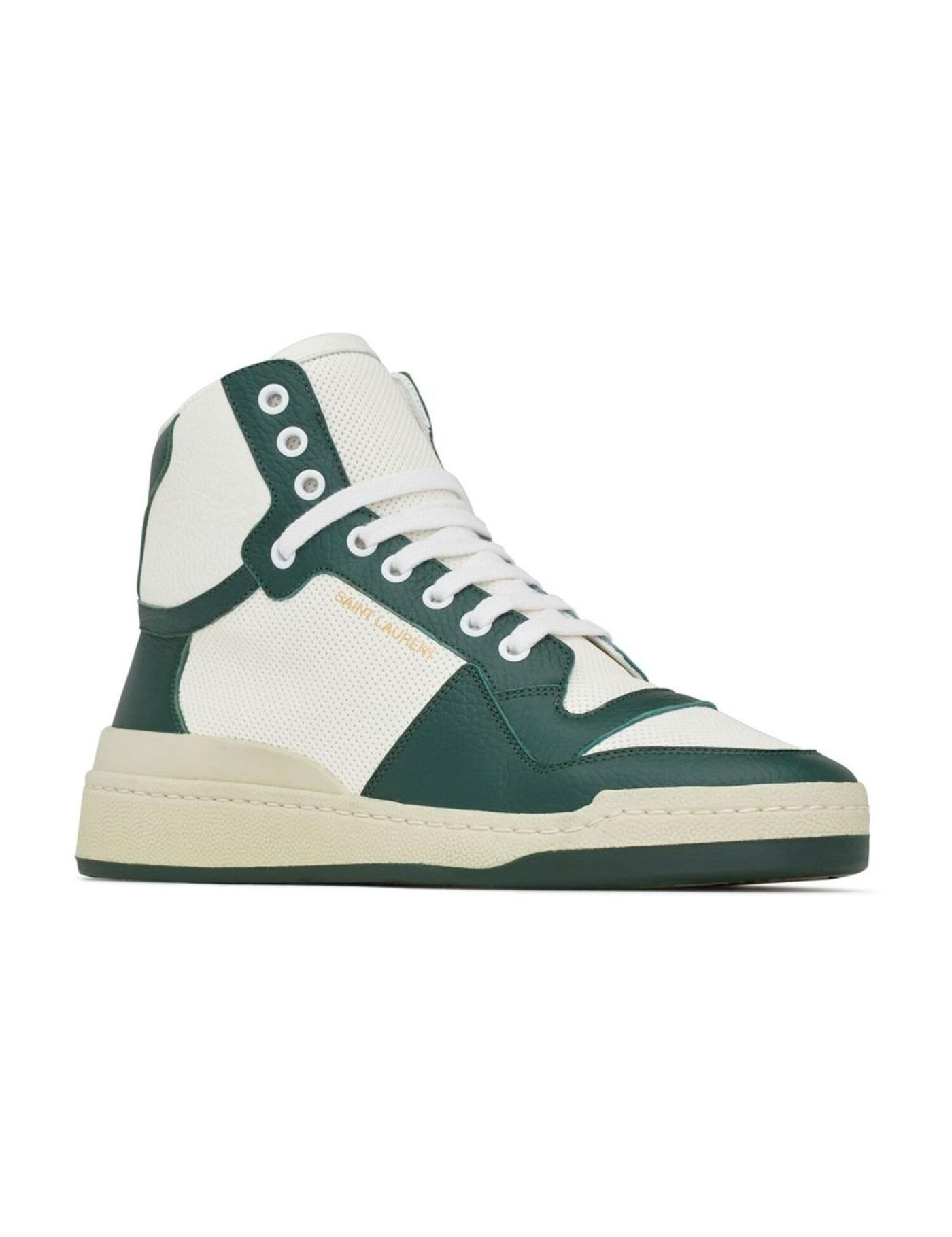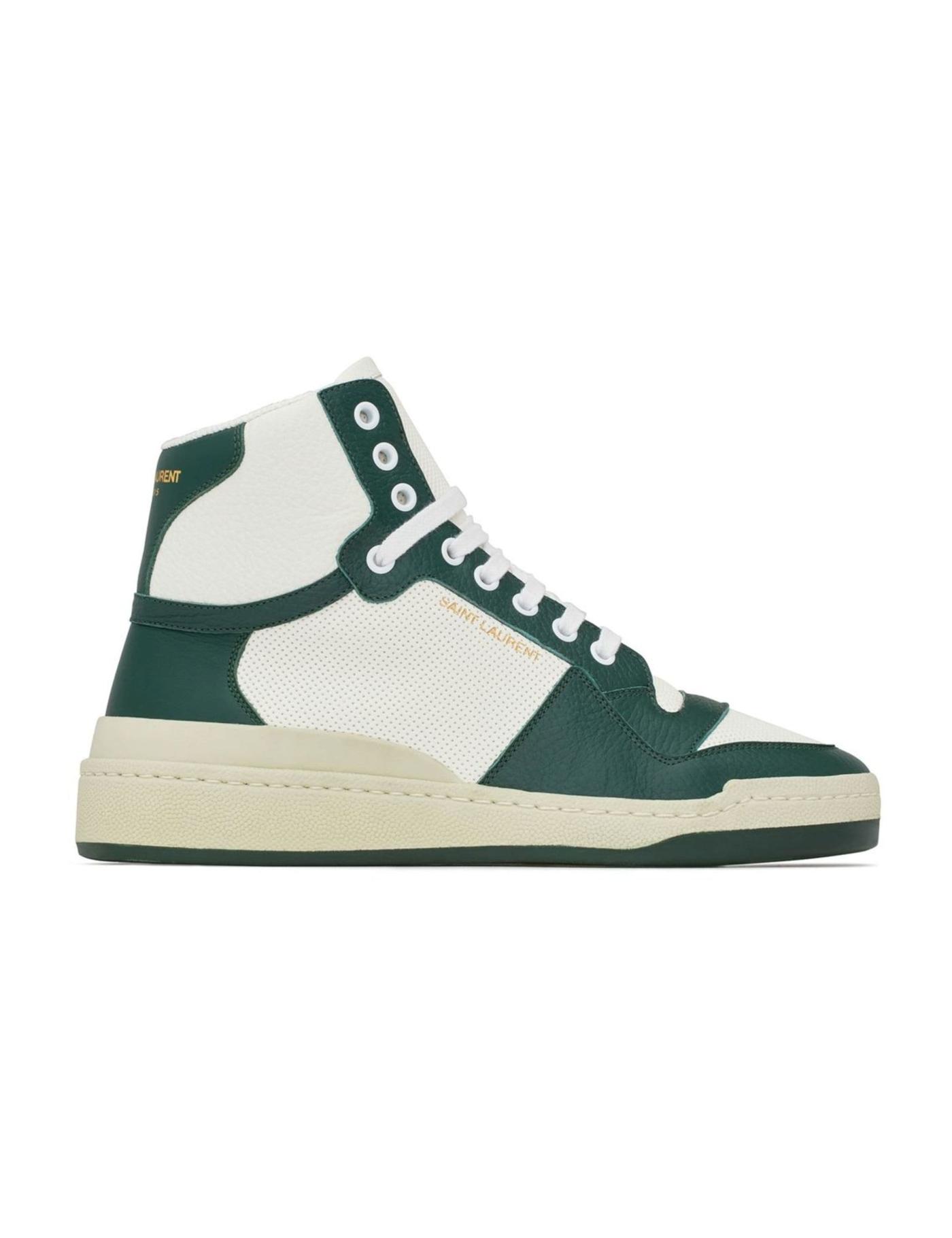 These Saint Laurent sneakers take on a retro-inspired silhouette. The pair are anchored with contrasting black and white panels of leather for a traditional approach to sneakers.