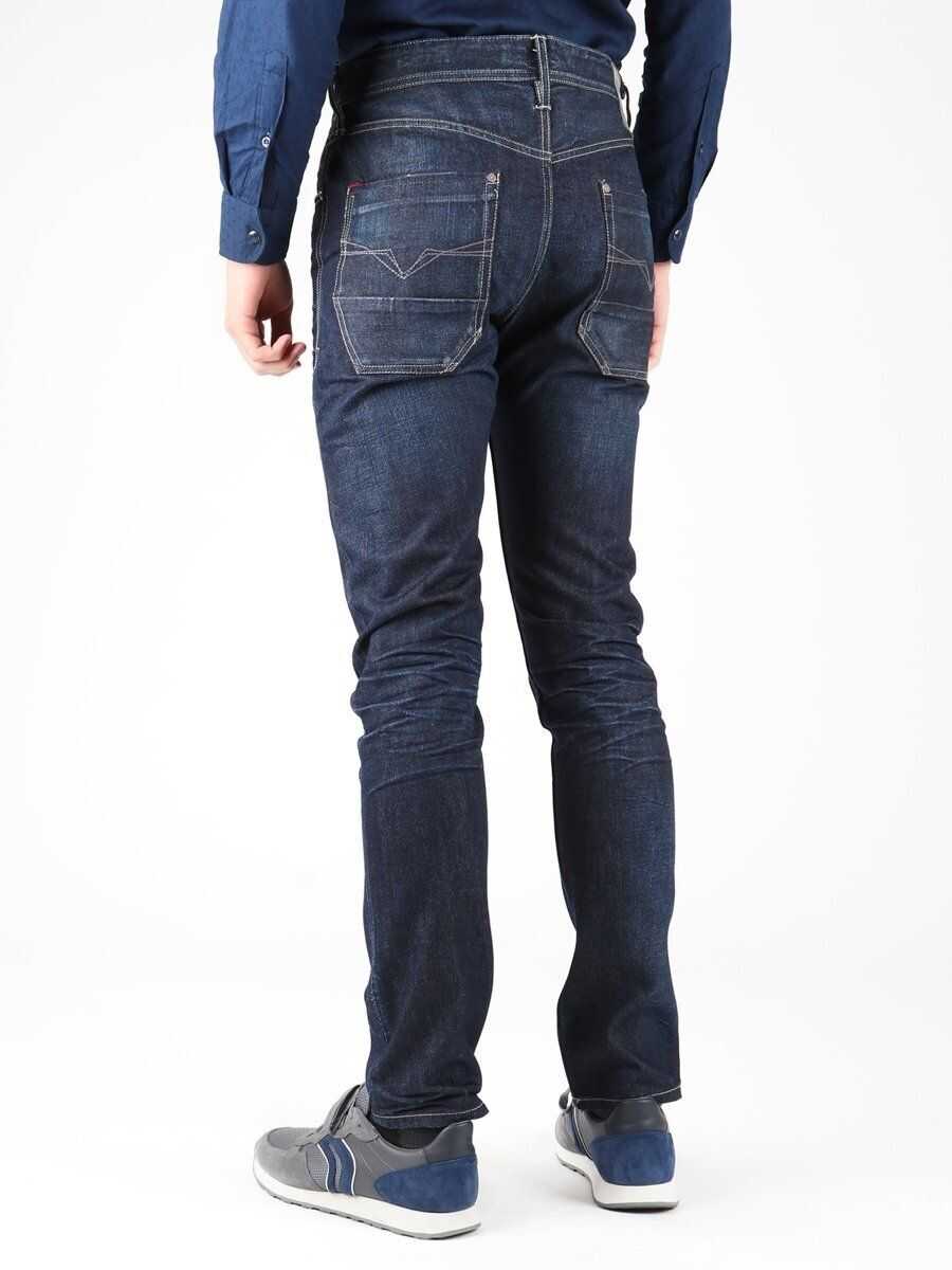Men's straight fit jeans with button fastening. Large front and back pockets. Guess leather logo patch on back of waistband.