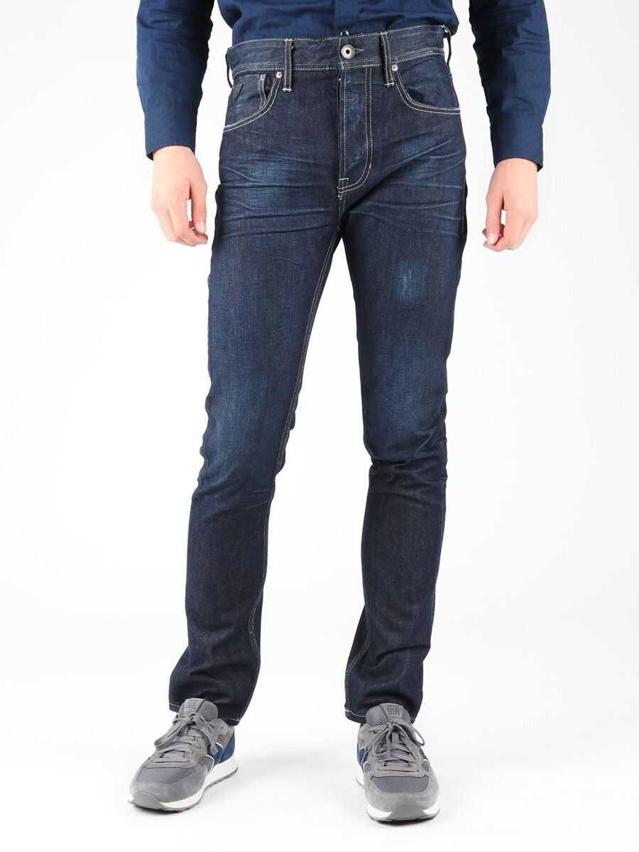 Men's slim fit jeans. Regular cut, high waist. Large front and back pockets. Guess leather logo patch on back of waistband.