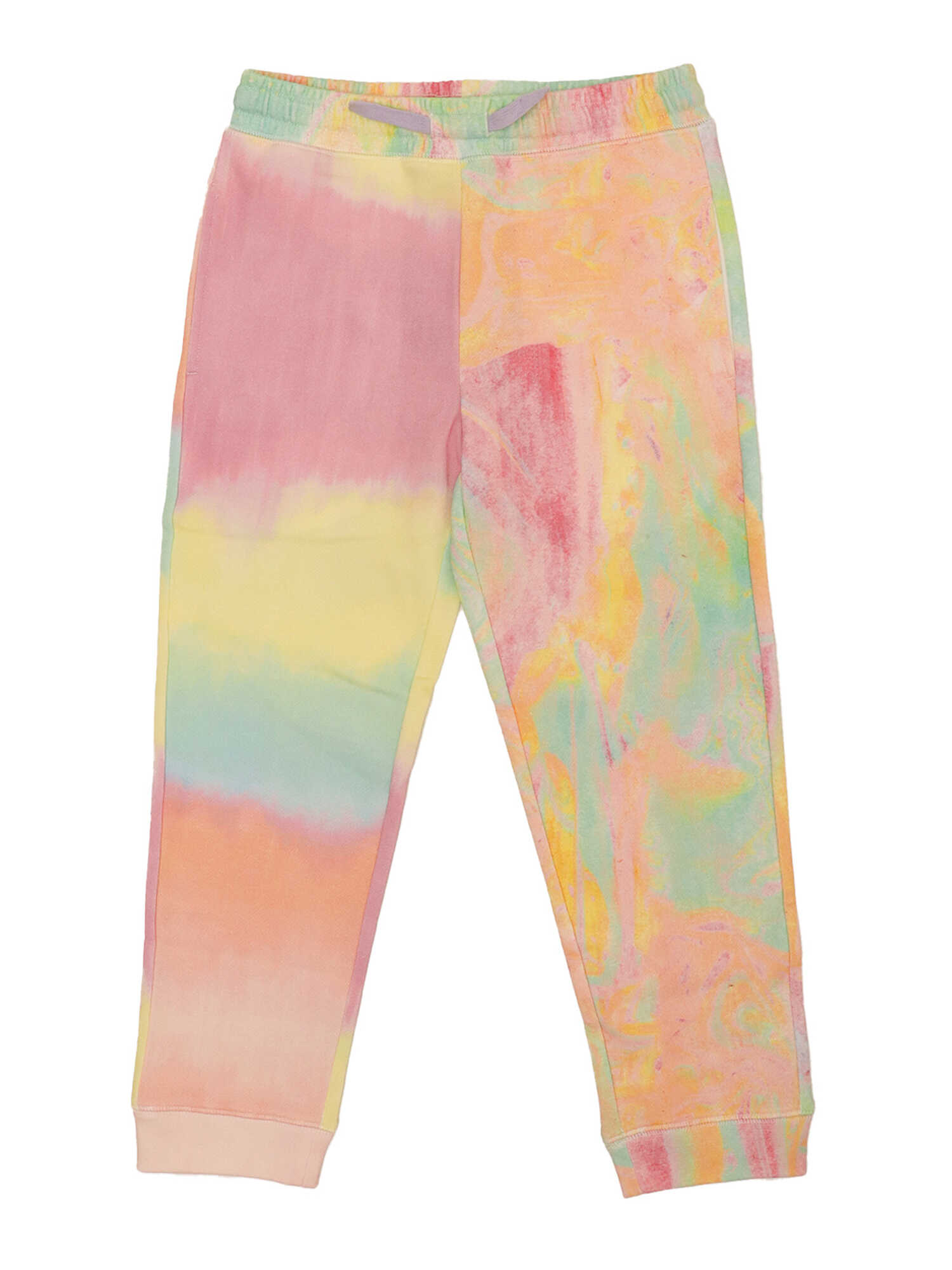 Multicolor organic cotton pants, stretch fit, tie-dye print, drawstring, elasticated waist, two side pockets