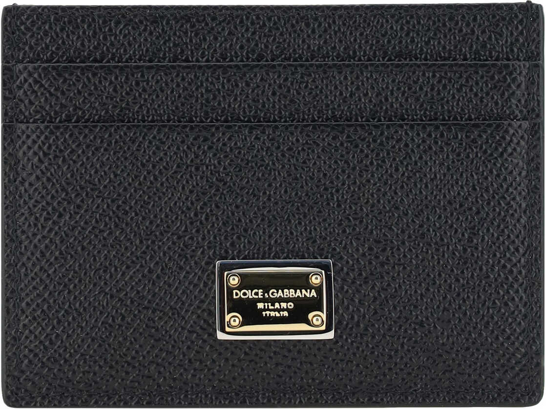 Calfskin Card Holder by Dolce&Gabbana, card slots on front and back, logo plaque on front, interior slot compartment.