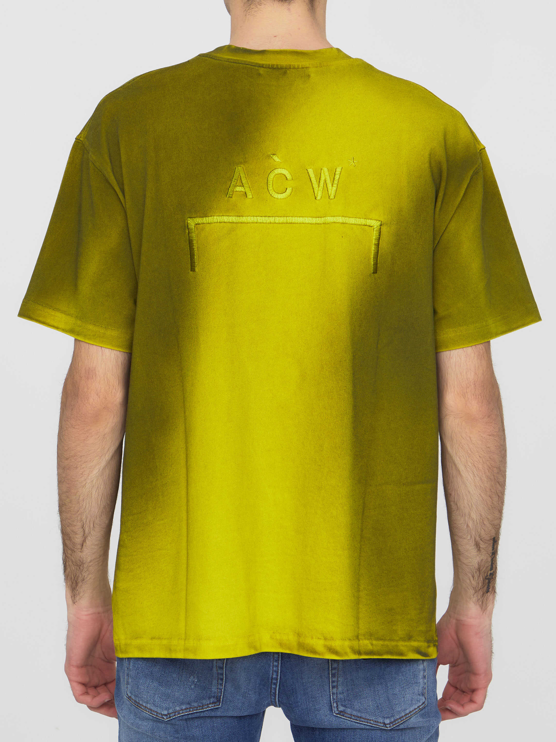 Short-sleeved crewneck t-shirt in yellow cotton with Gradient print. ACW logo embroidered on the front, on the sleeves and on the back. Ribbed neck.