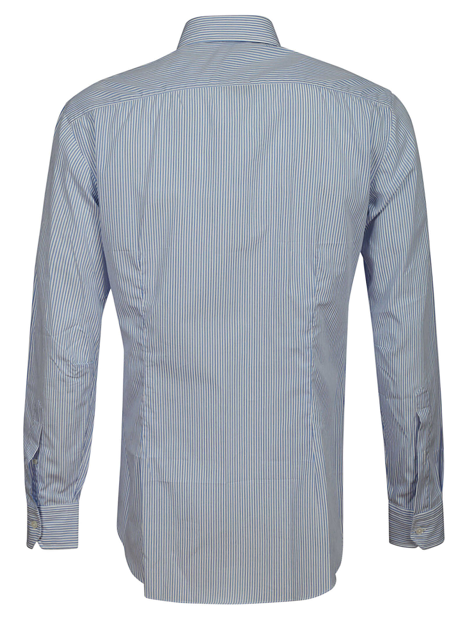 Salvatore Piccolo white and blue stripes shirt made of cotton, mother pearl buttons, cuffs with buttons.