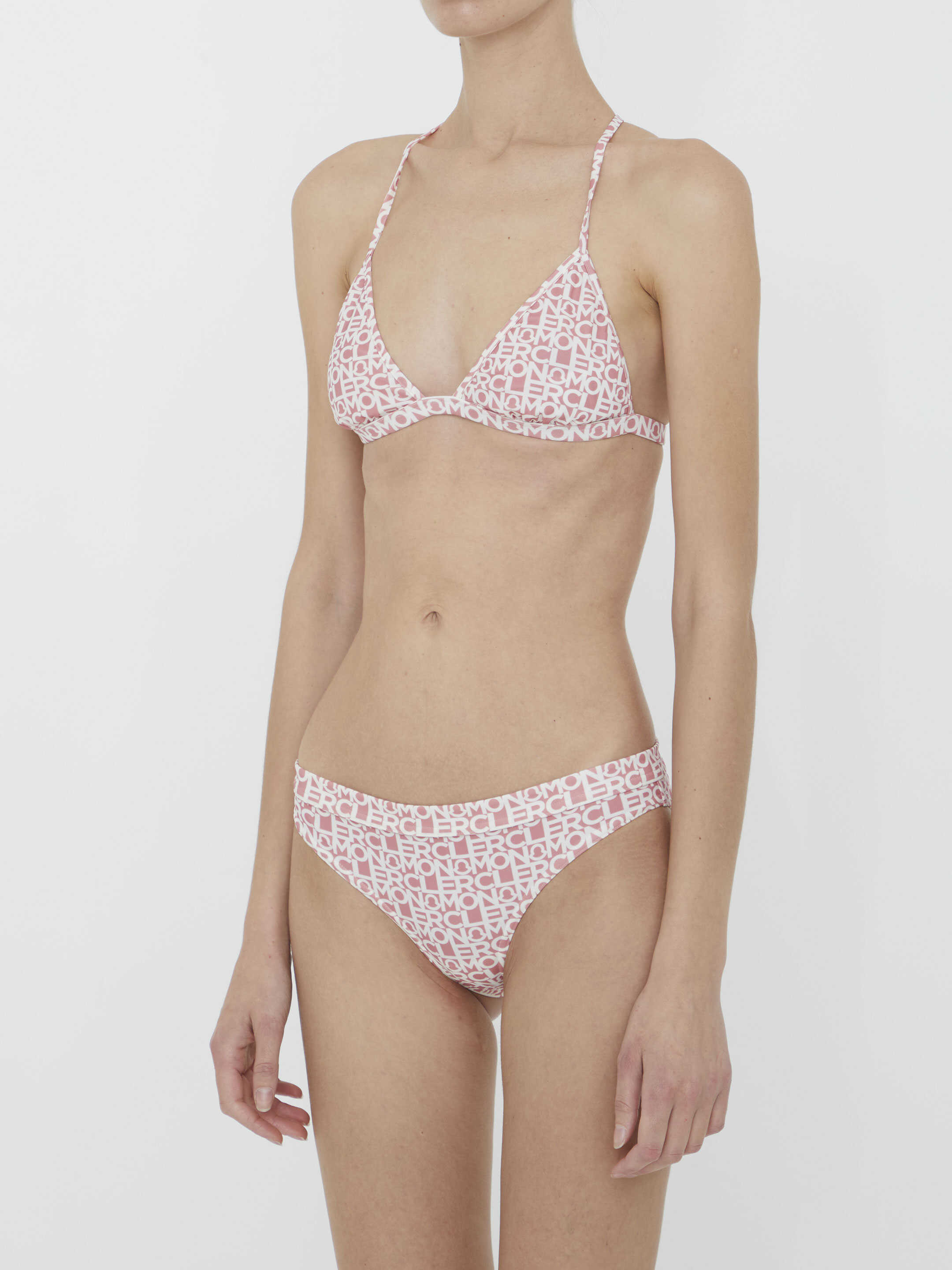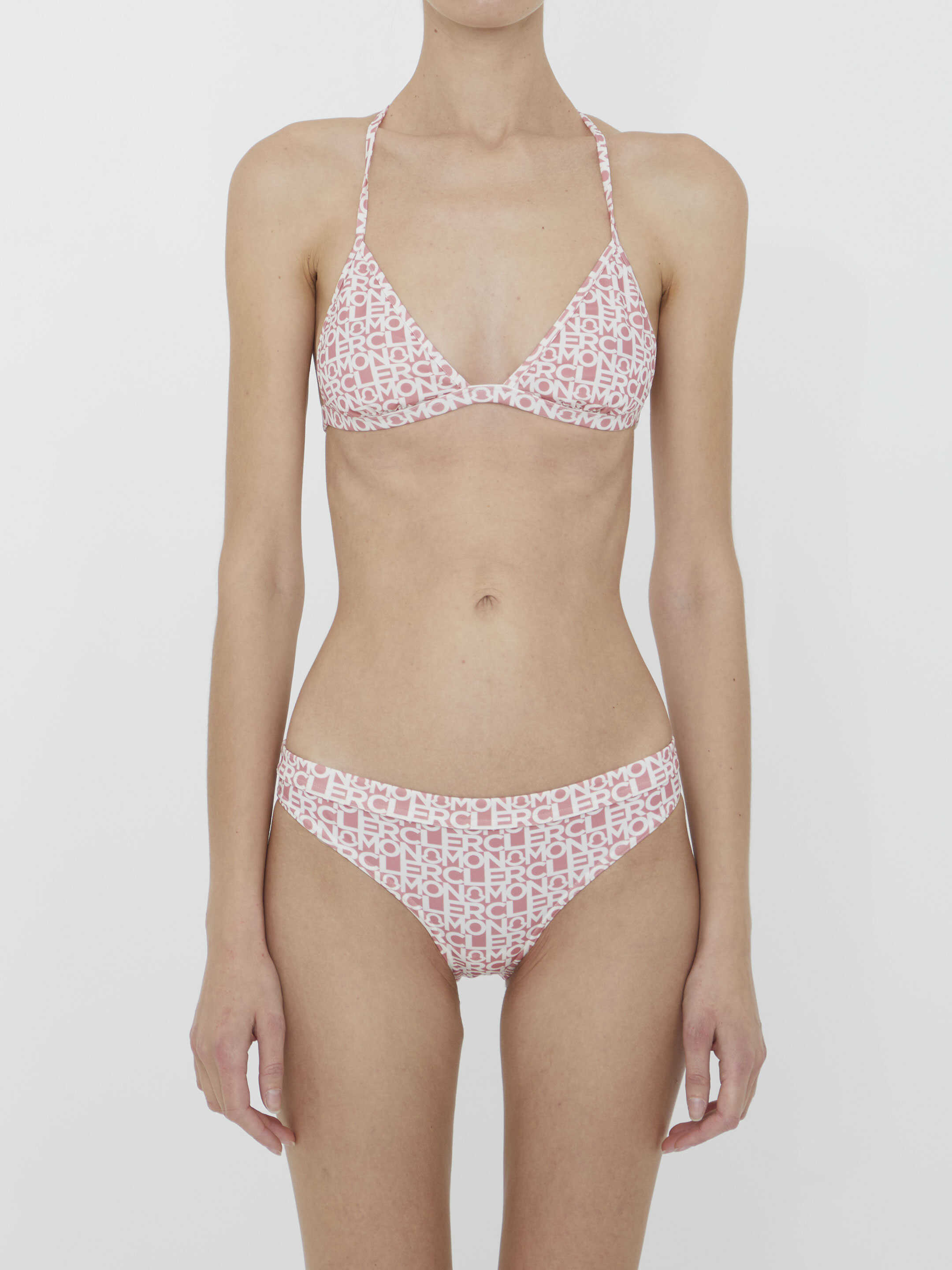 Alose two-piece bikini in pink and white nylon with all-over Moncler logo print. Adjustable top with Moncler detail at the back.