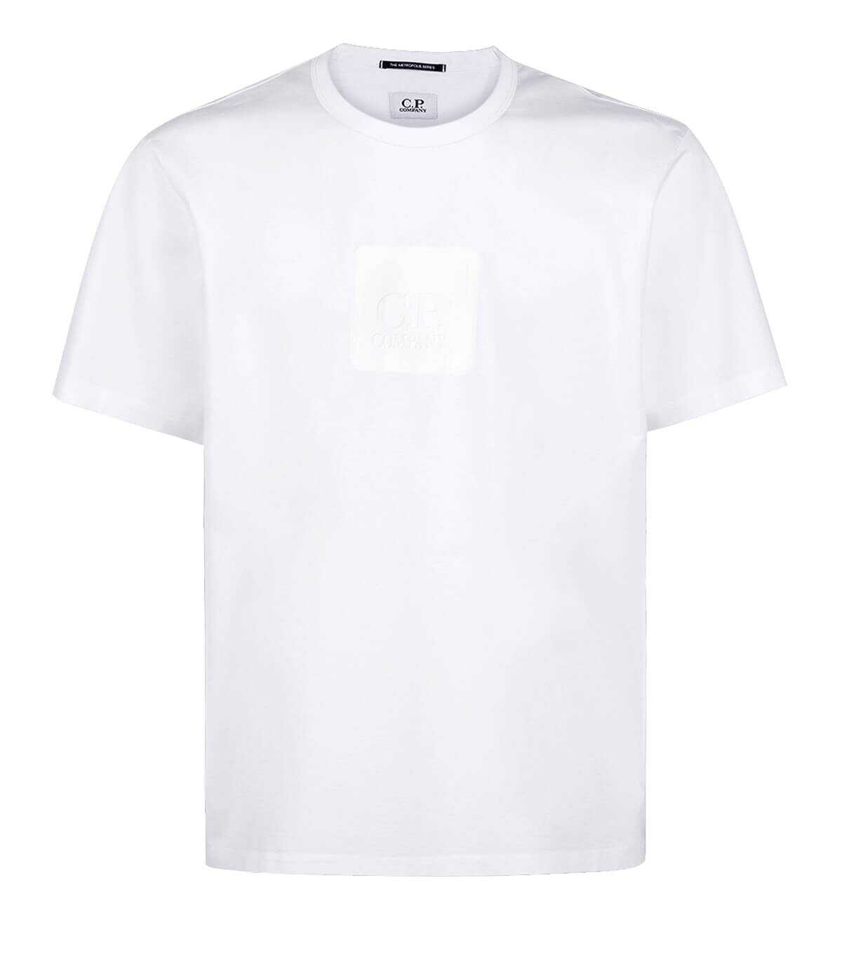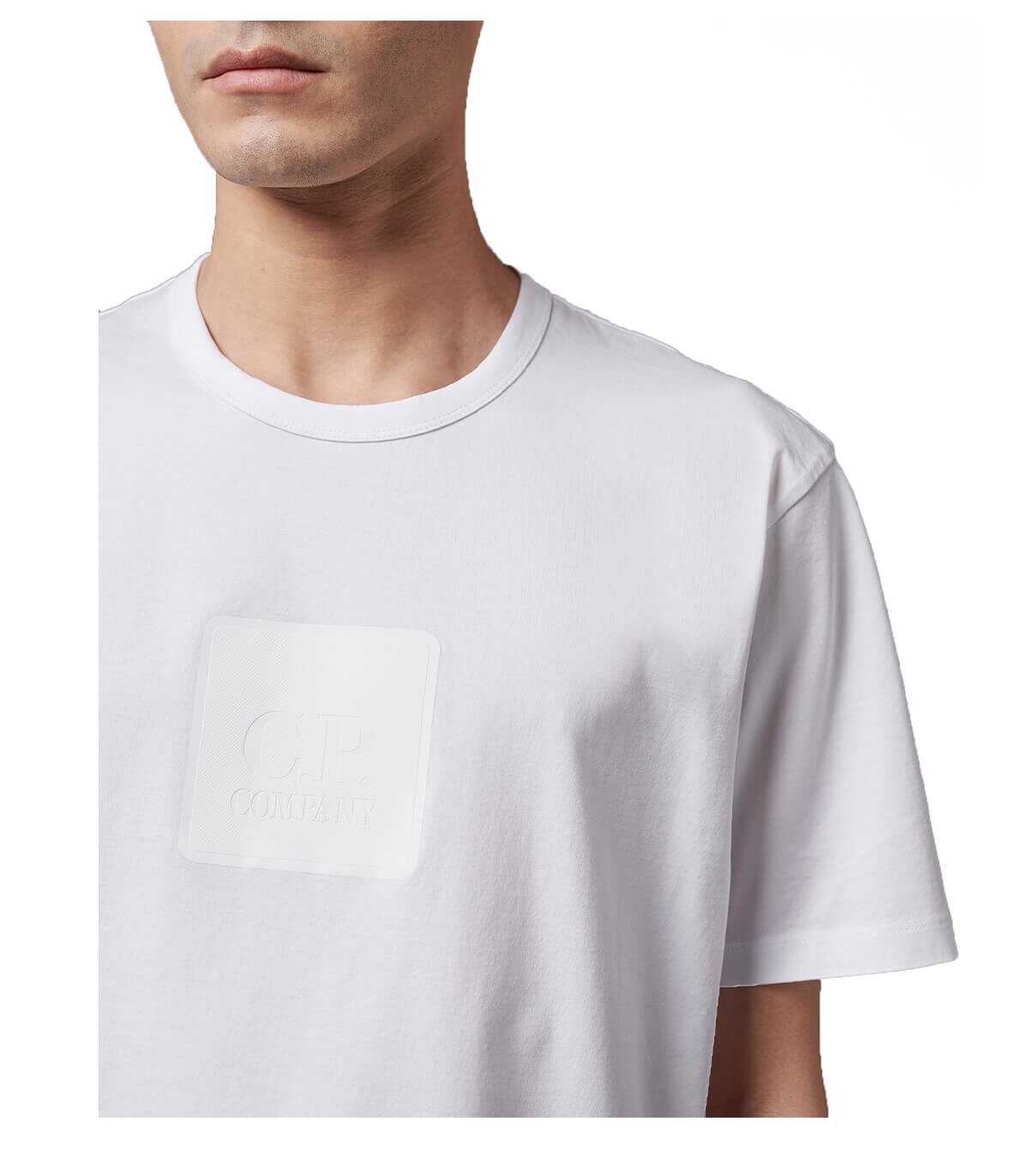 C.P. Company t-shirt made of white cotton jersey with rubberized logo on the front.