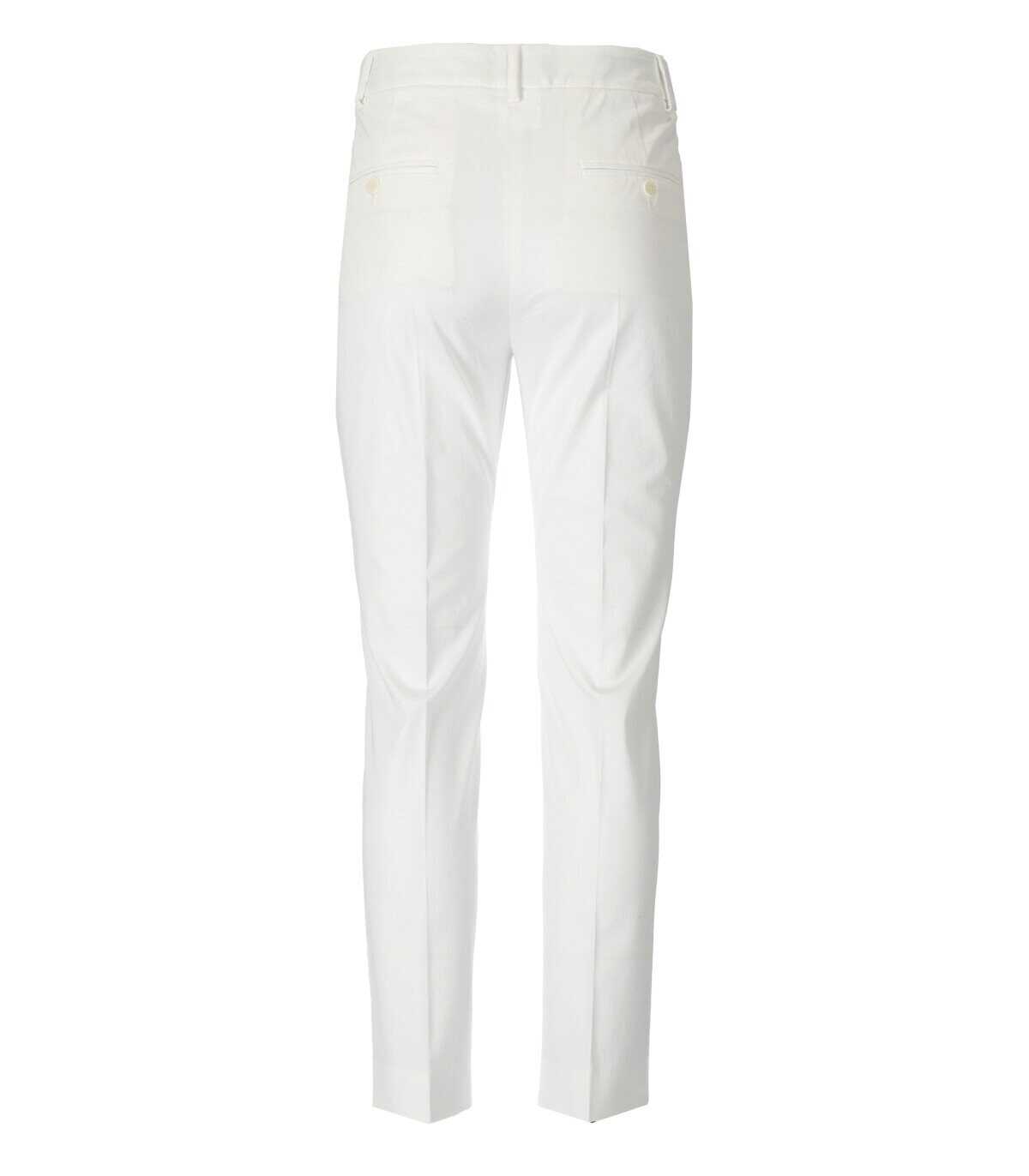 Cecco pants by Max Mara Weekend made of white stretch cotton gabardine with ironed crease on the front. French pockets on the sides, welt pockets on the back and zip and metal hook closure.