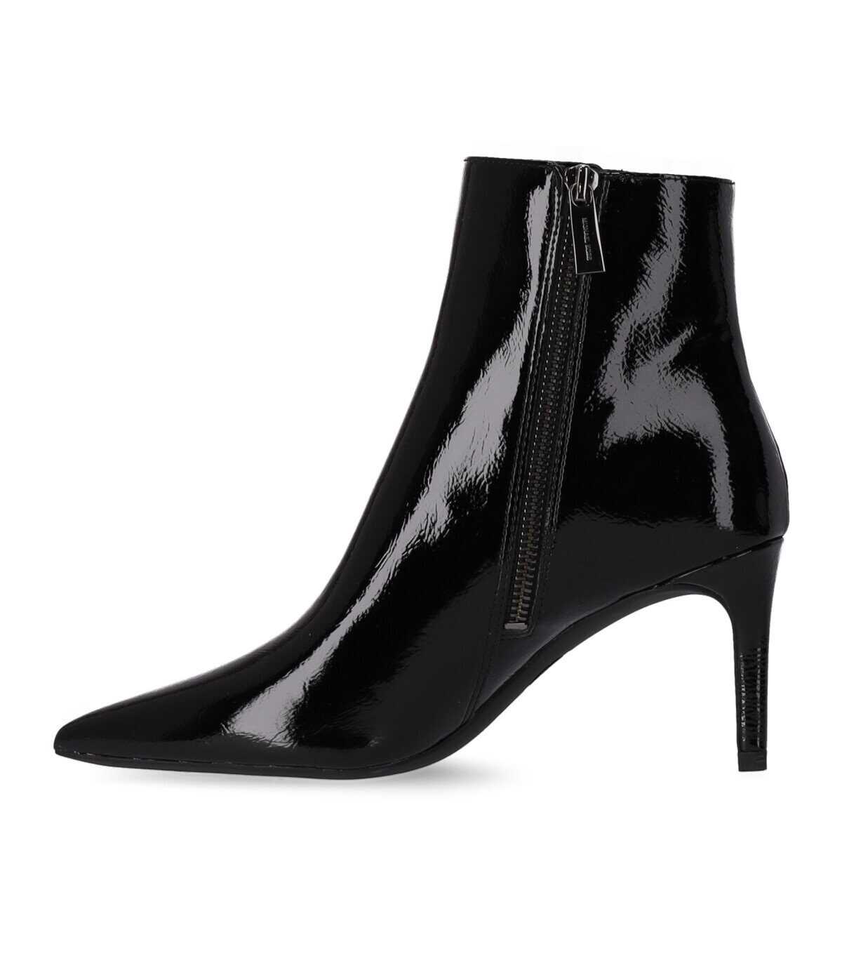 Alina ankle boot by Michael Kors made of black patent leather. Side MK logo, zip closure and leather insole. Rubber sole, 7.5 cm heel height.