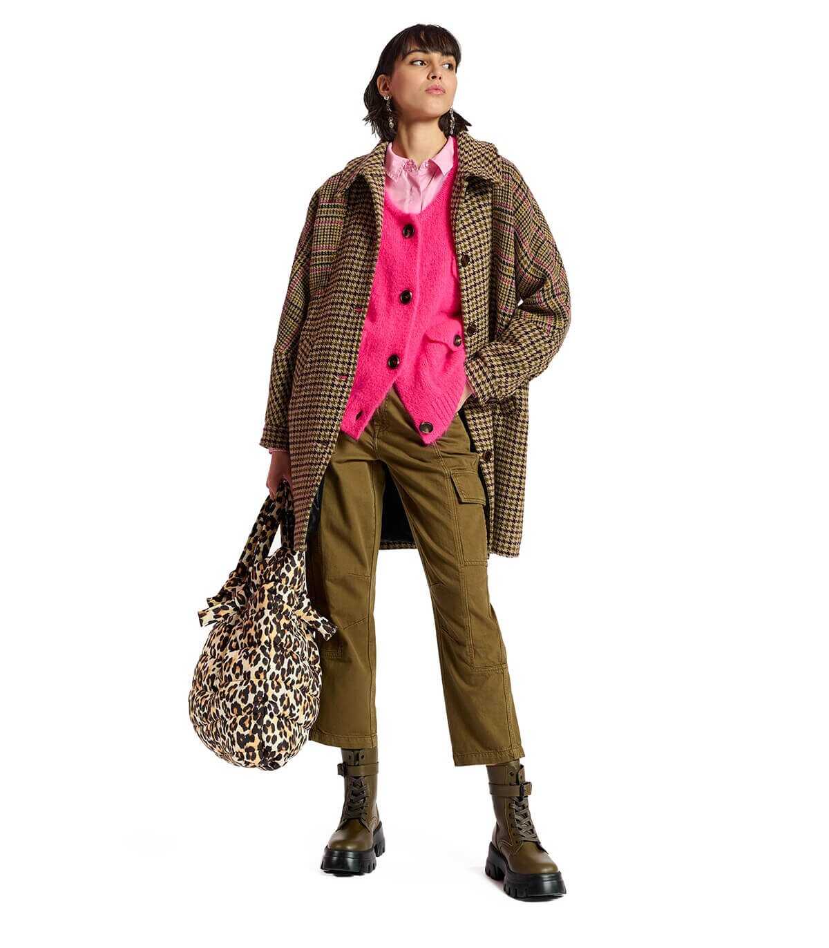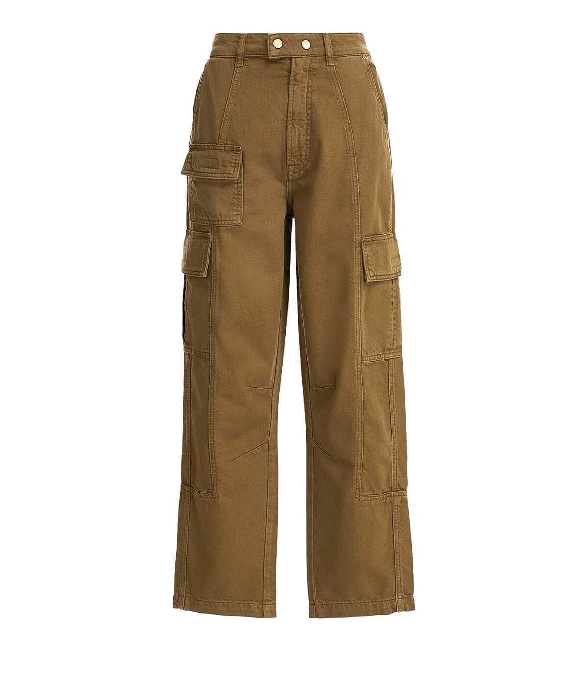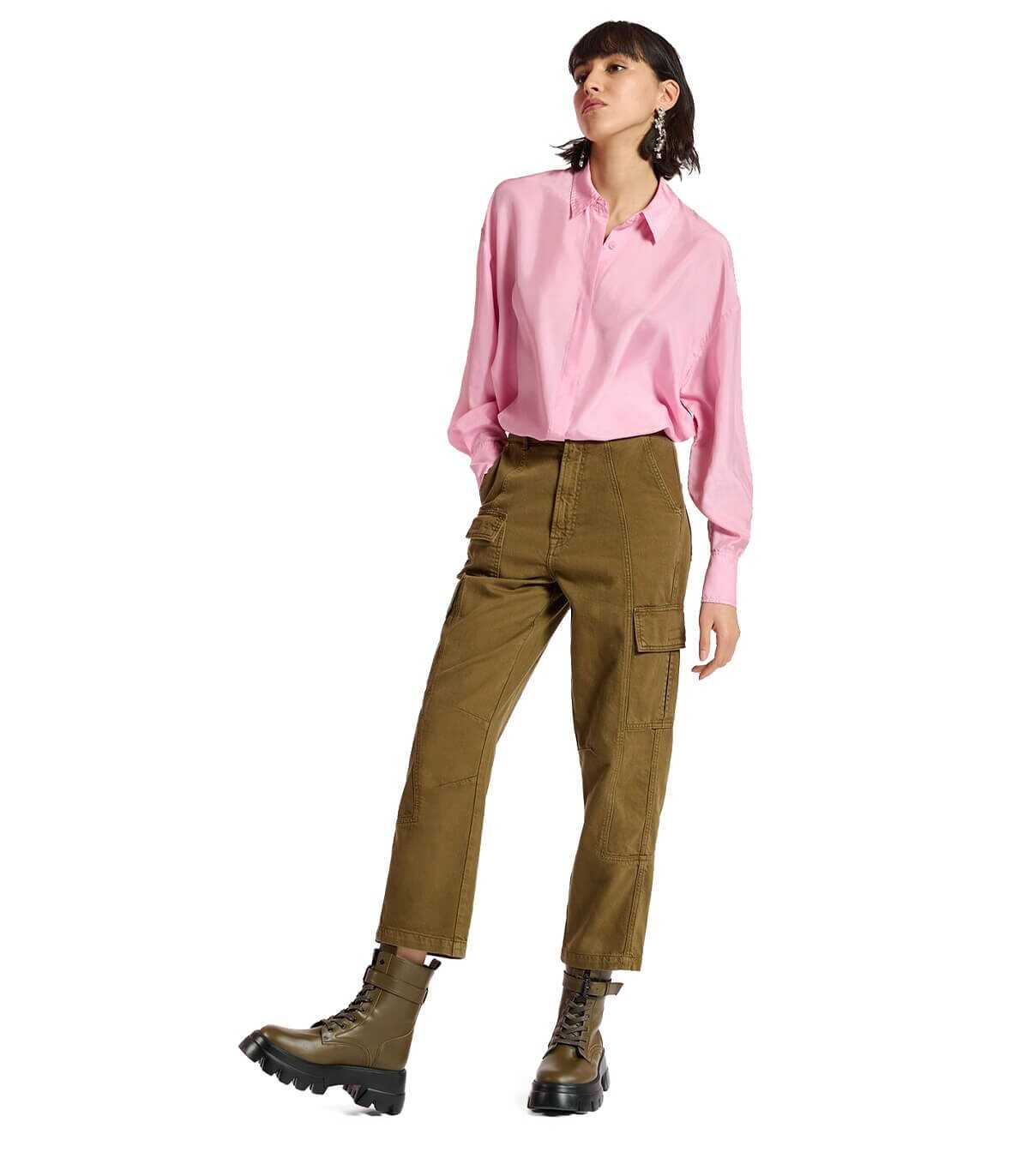 Clearly jeans by Essentiel Antwerp made of khaki cotton. Cargo pockets, high waist and straight leg. Zip and button closure.