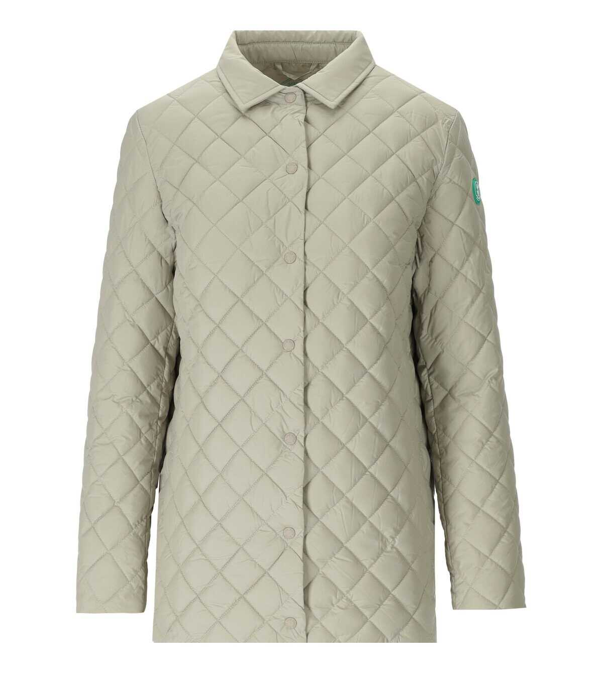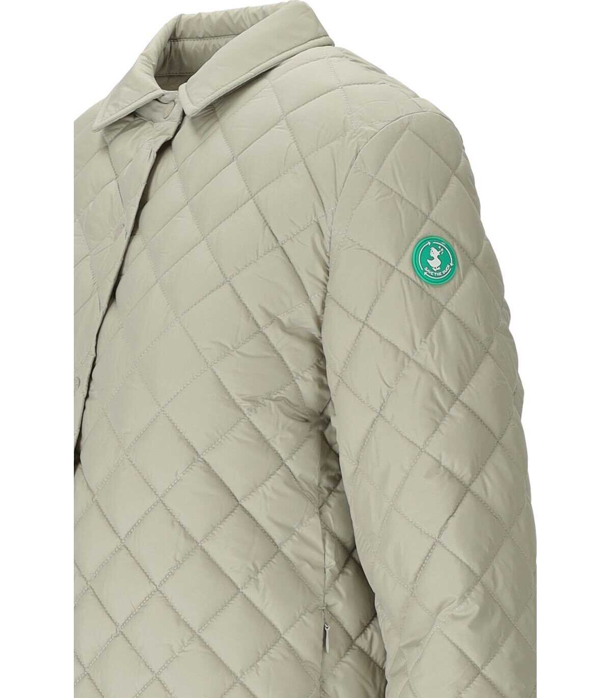 Save The Duck Libra padded jacket made of beige recycled fibers. It features a shirt design, diamond quilting and a contrasting logo patch on the sleeve. Animal-free padding, front zip pockets and button closure. Guarantees maximum levels of waterproofing and breathability.