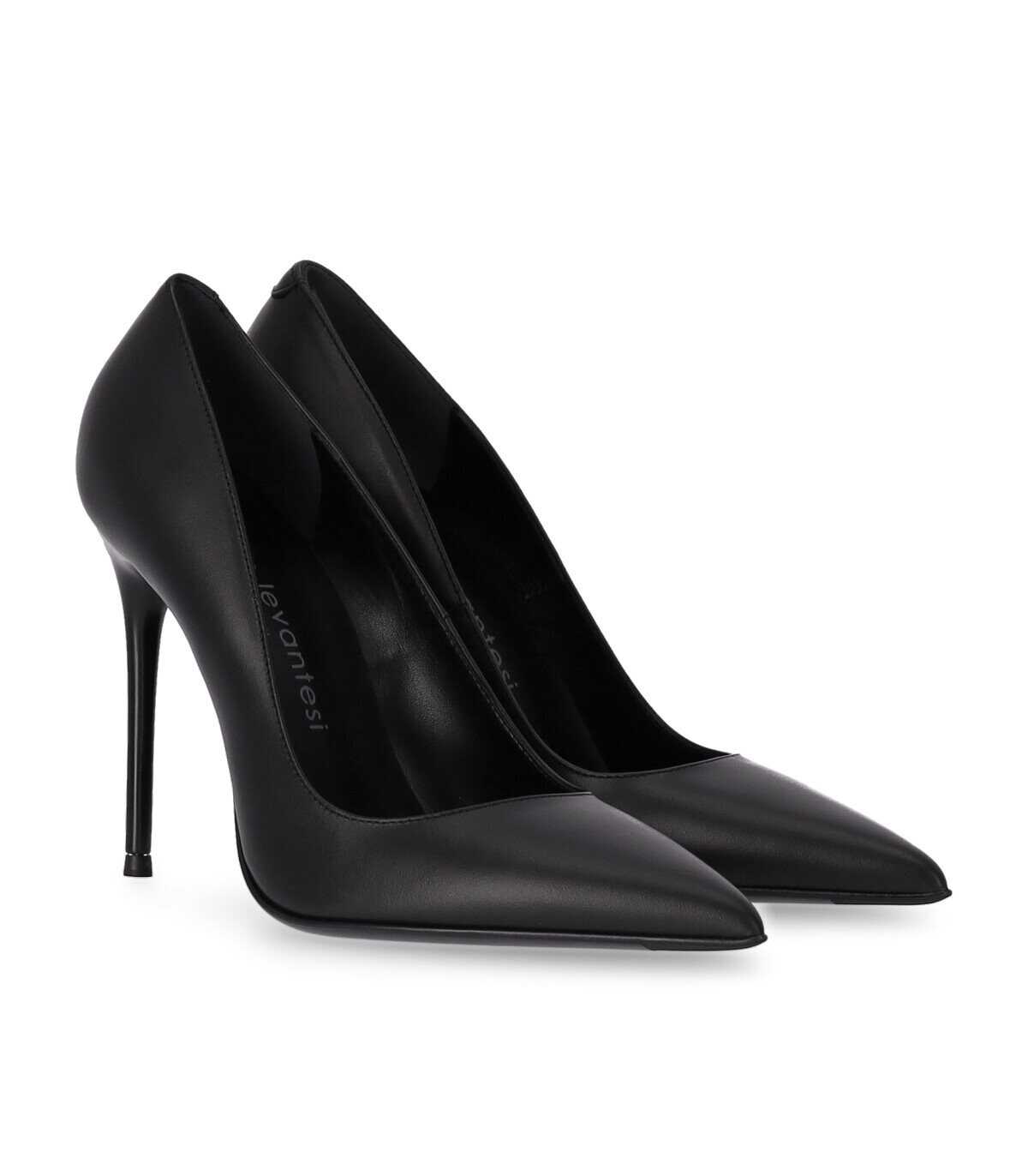 Last pump by Sergio Levantesi made of soft black leather with tapered toe and stiletto heel. Leather insole and leather sole, height 10 cm.