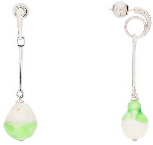 "Pearl Drop" earrings by PANCONESI made of brass with partially enameled dangling pearls. Push back clasp.