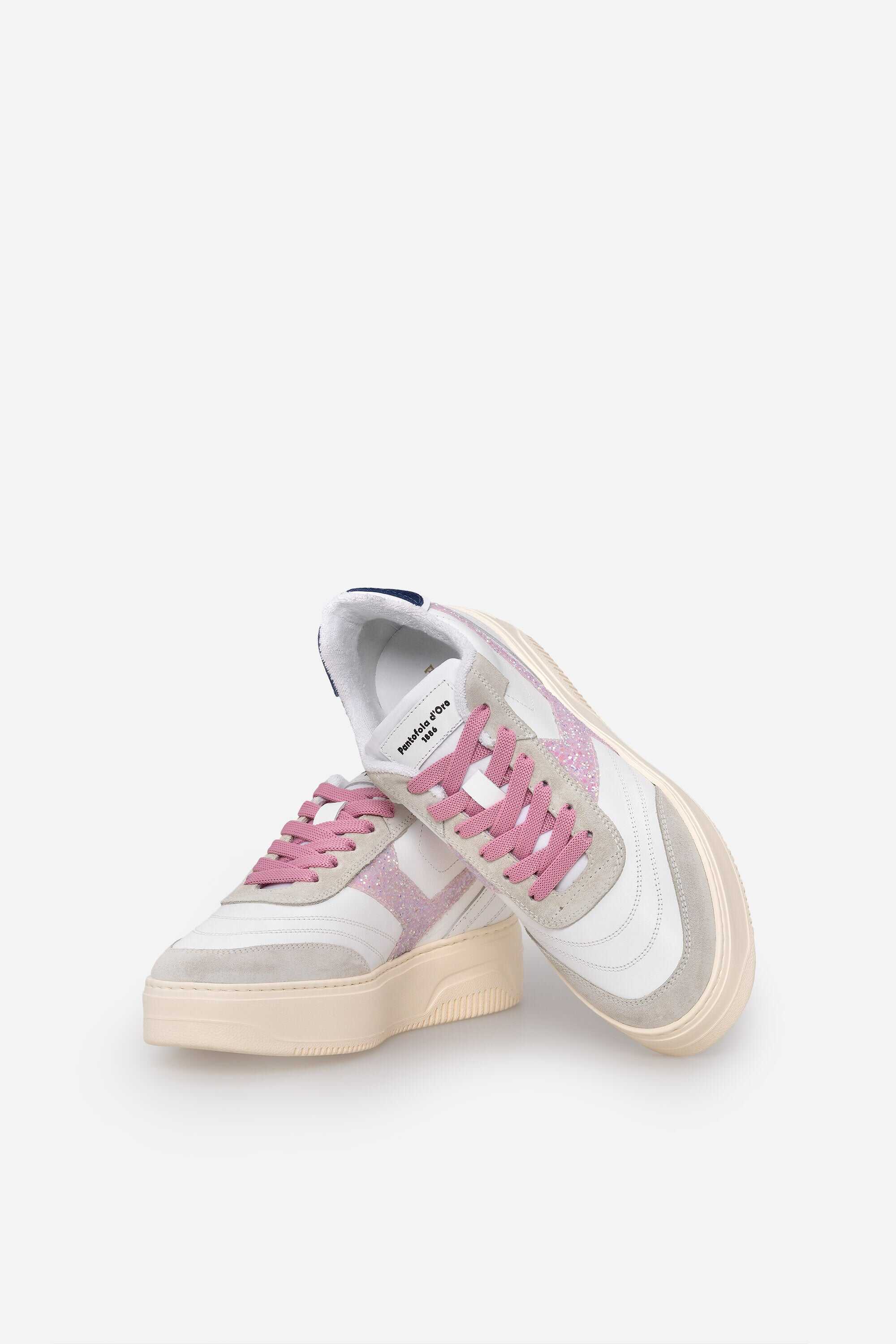 Step up your sneaker game with these Pantofola D'oro Crossball Women's Sneakers. Crafted from high-quality leather, these sneakers feature a contemporary silhouette with retro details. The lace-up design and rubber sole provide comfort and durability. These sneakers are perfect for any casual occasion, and the side-panel glitter detailing and logo on the heel add a touch of glam to your look. Made in Italy, these white sneakers are a must-have for any fashion-forward woman. Get yours now and step out in style!