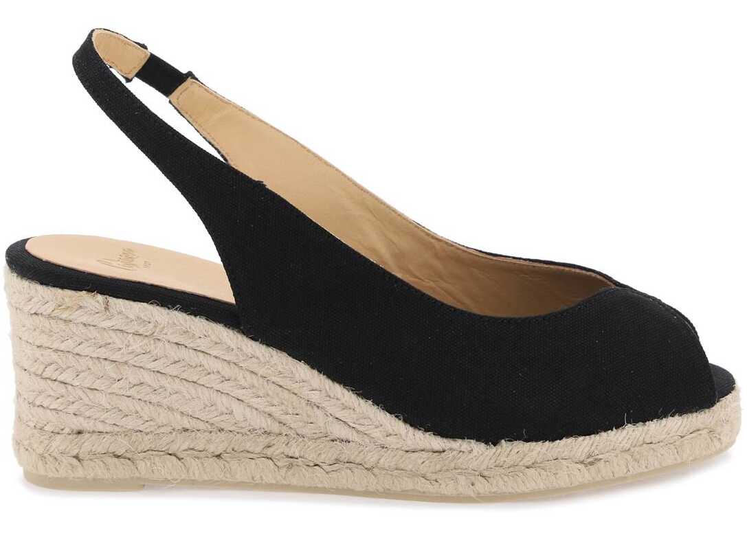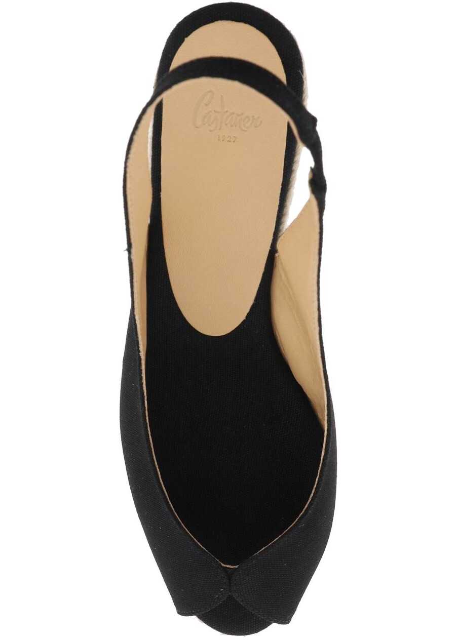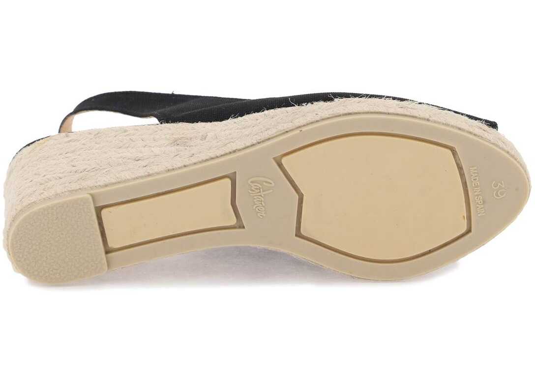 The Dosalia espadrilles by Castañer are made of organic cotton canvas with an open toe design. They feature a leather lining, canvas insole, rope wedge and vulcanized rubber sole.