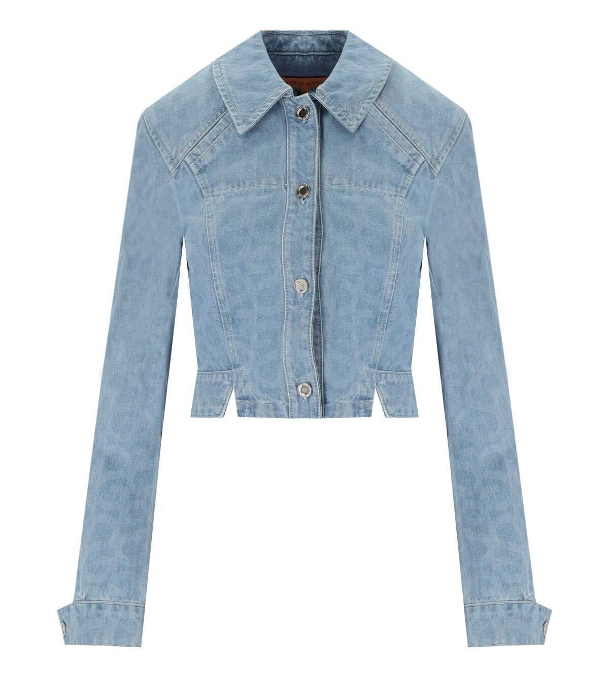 Sammie jacket by Stine Goya made of light wash denim with SG monogram pattern. Slightly puffed shoulders, button closure.
