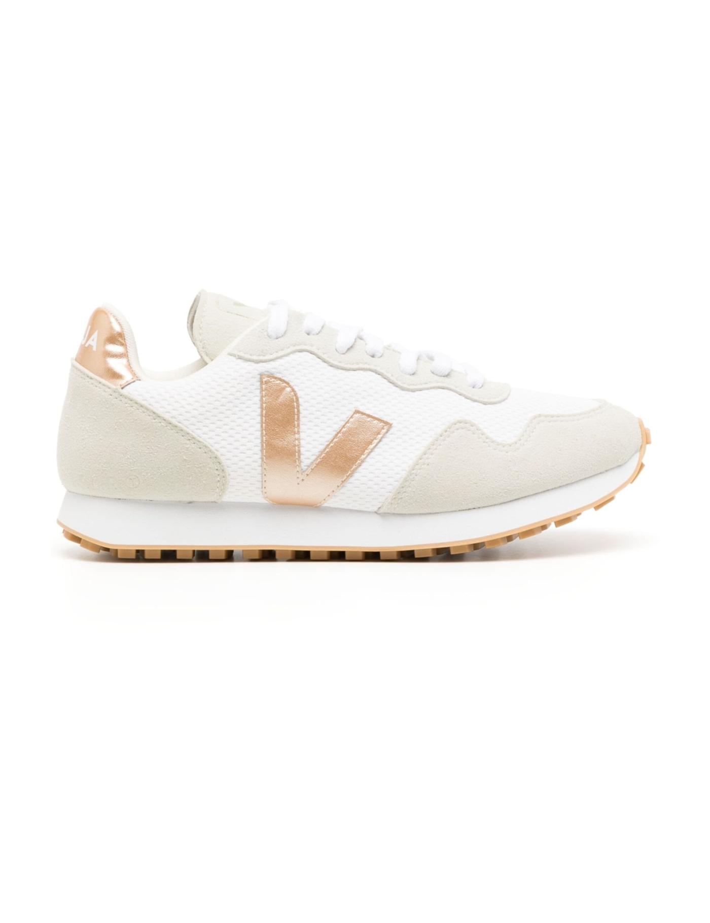 VEJA's commitment to sustainable footwear is encapsulated in the brand's signature materials, which fuse functionality with an eco-conscious approach. These panelled sneakers are crafted in vegan suede with mesh panels in beige and white hues.