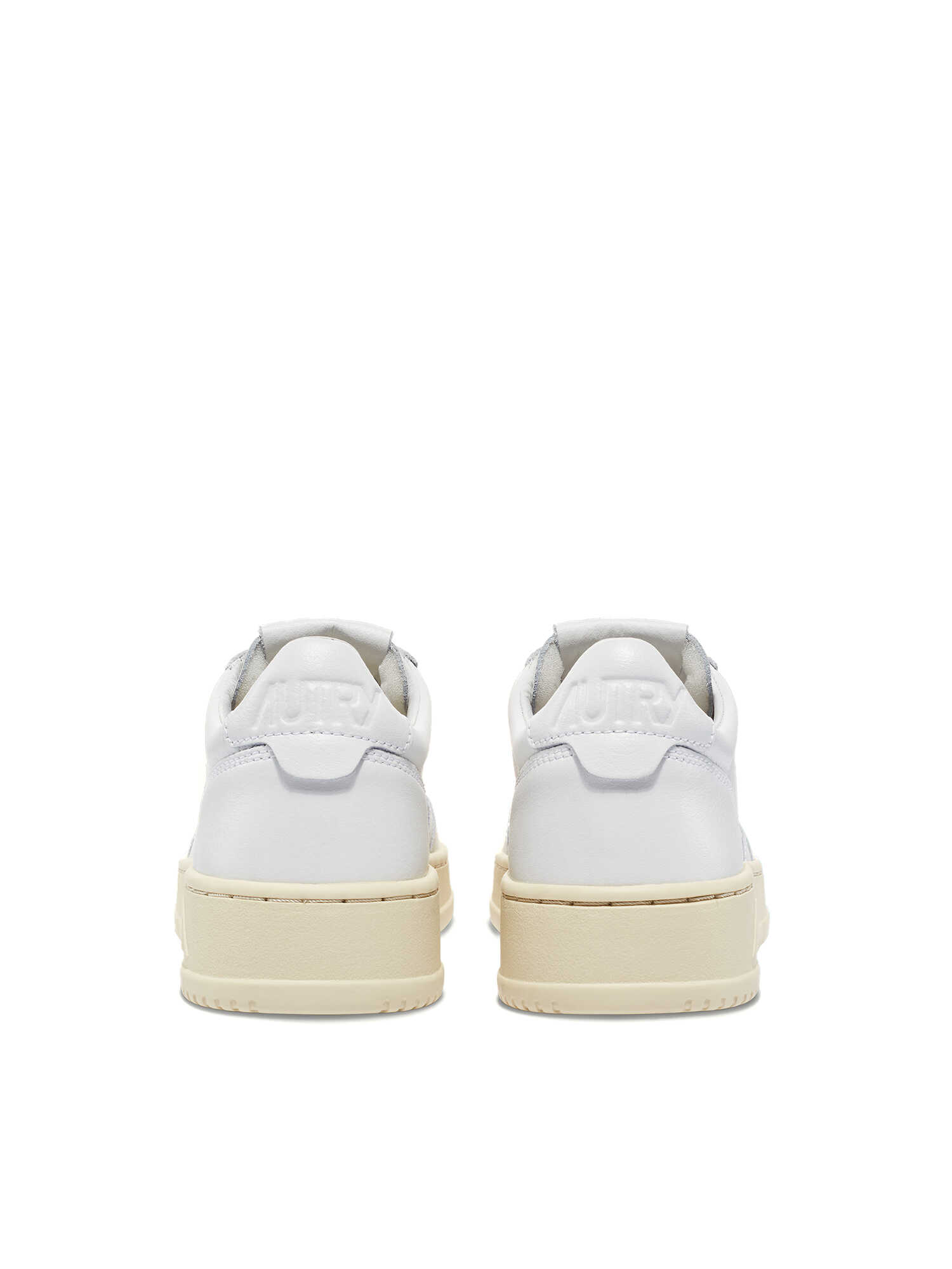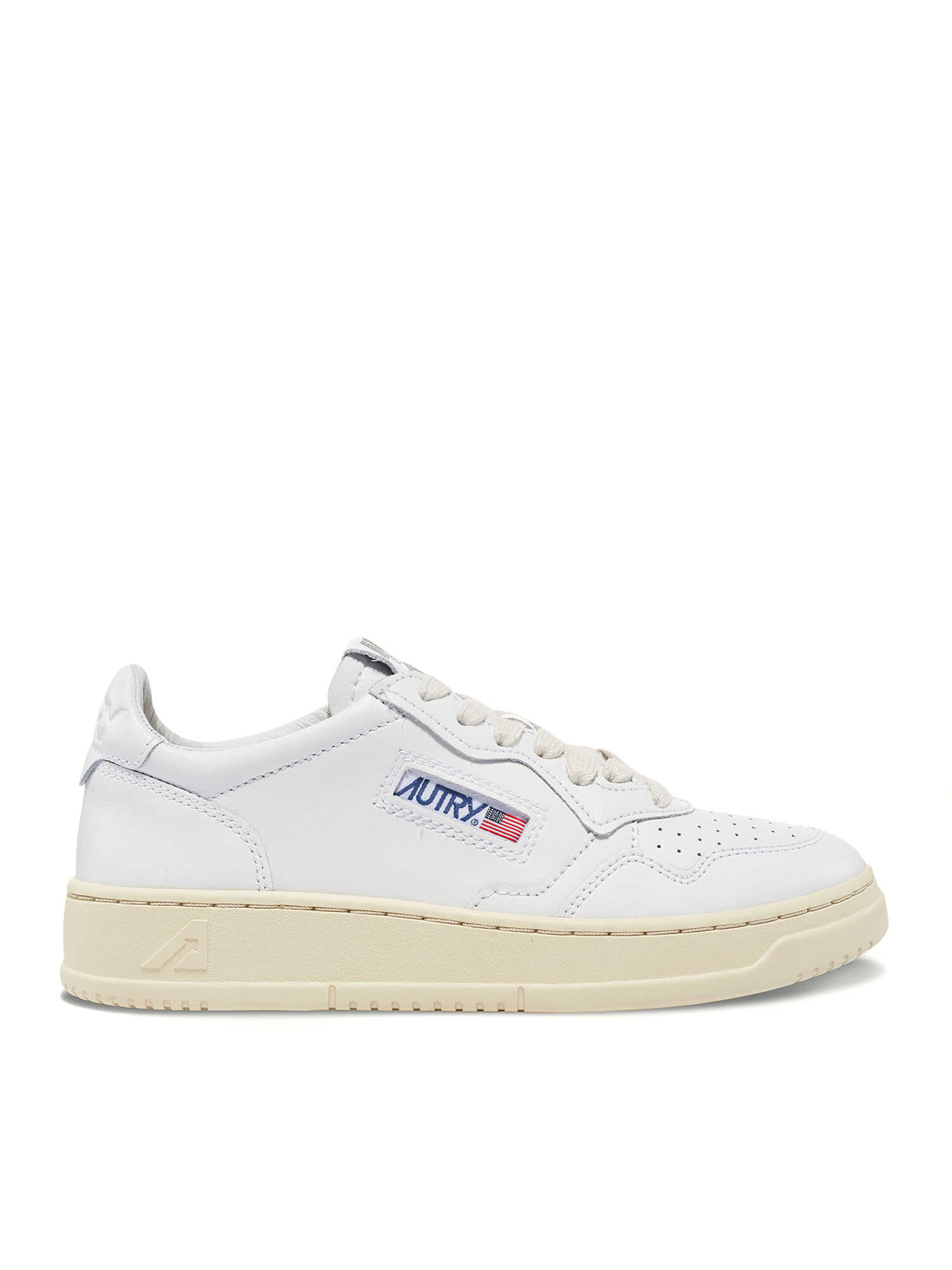 White Autry Medalist kid low sneakers in calfskin with perforated upper and contrasting reinforced heel.
