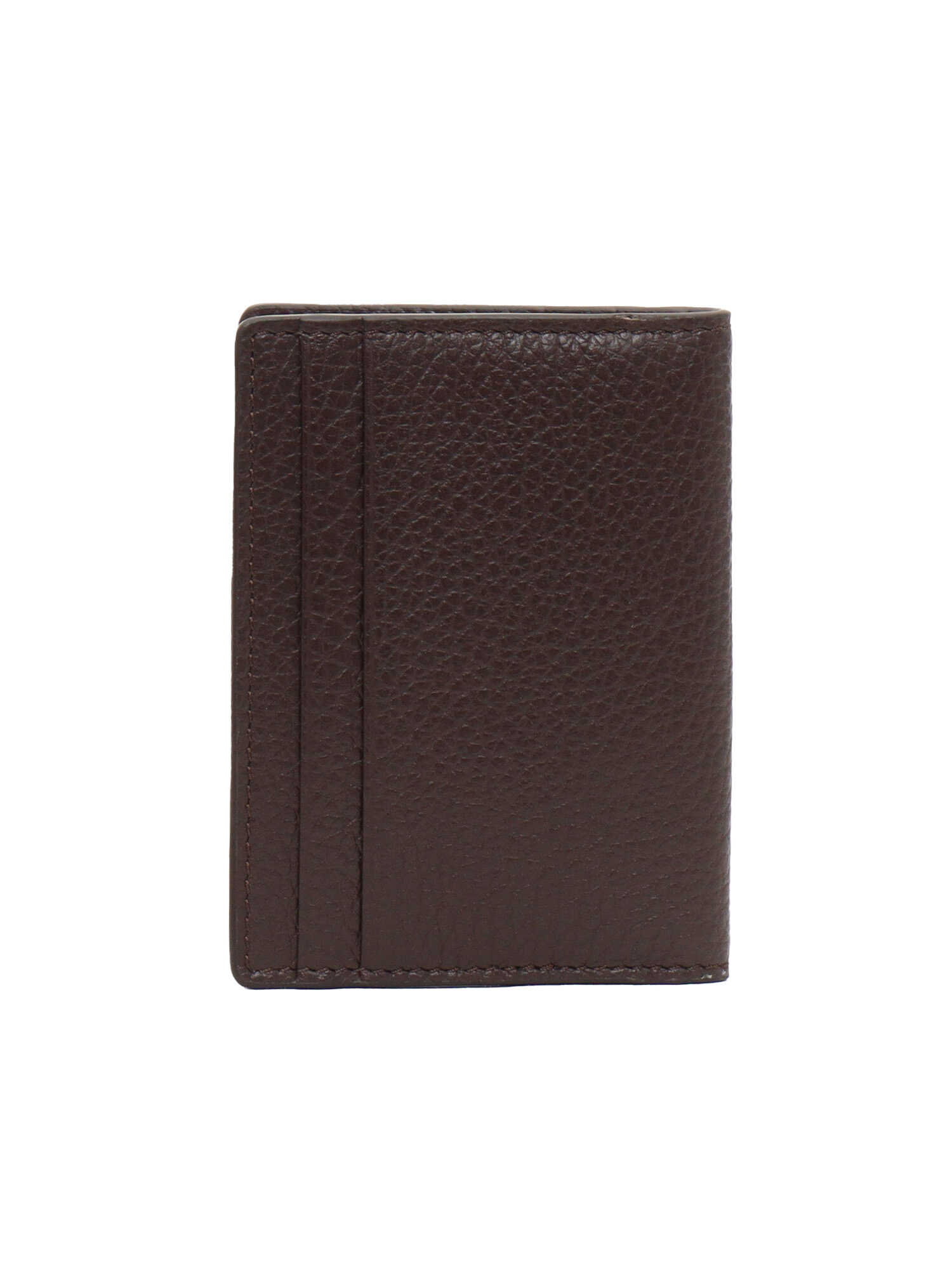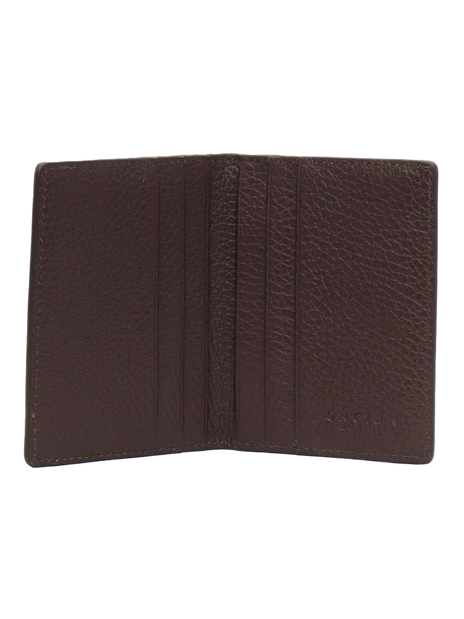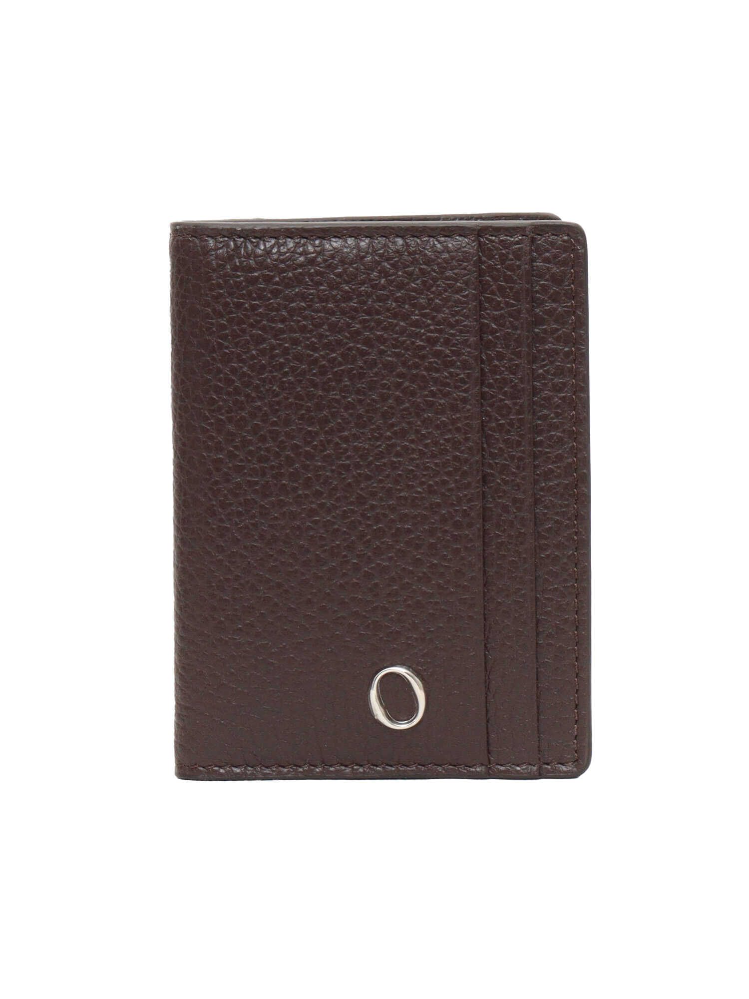 Brown Orciani card holder in calfskin with contrasting logo on the front.