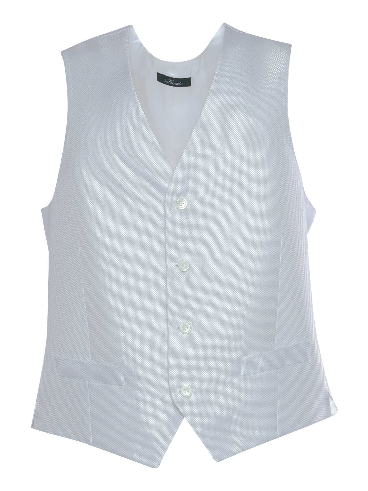 Light gray men's waistcoat in silk and polyester blend, front buttoning, welt pockets, back strap for a slimmer fit.