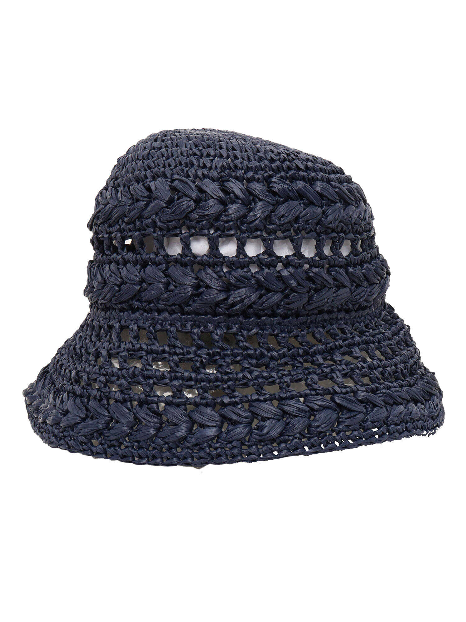 Blue bucket hat for women in woven viscose and cotton.