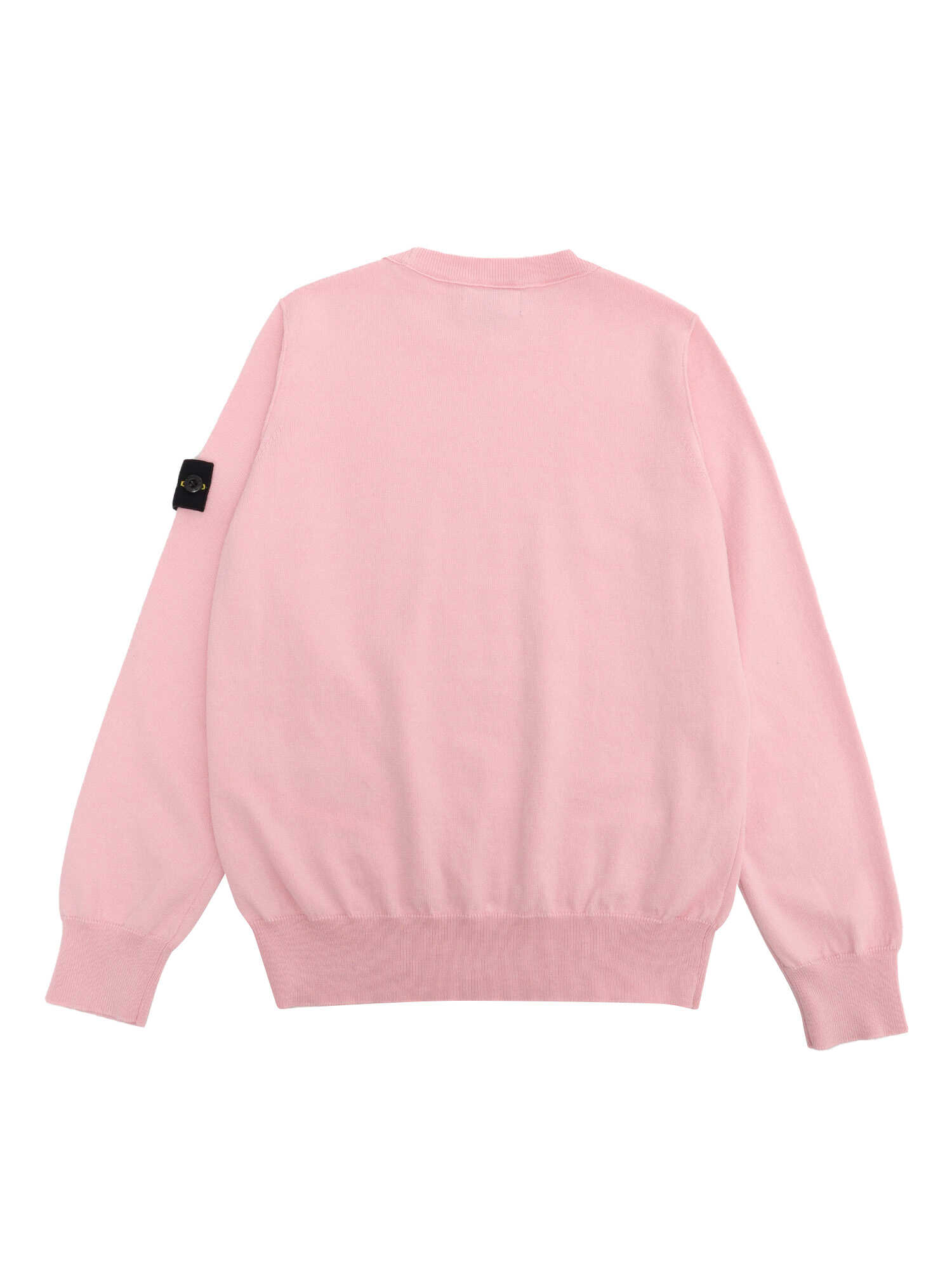 Pink crew-neck sweatshirt with Stone Island logo plate on the sleeve, in cotton.