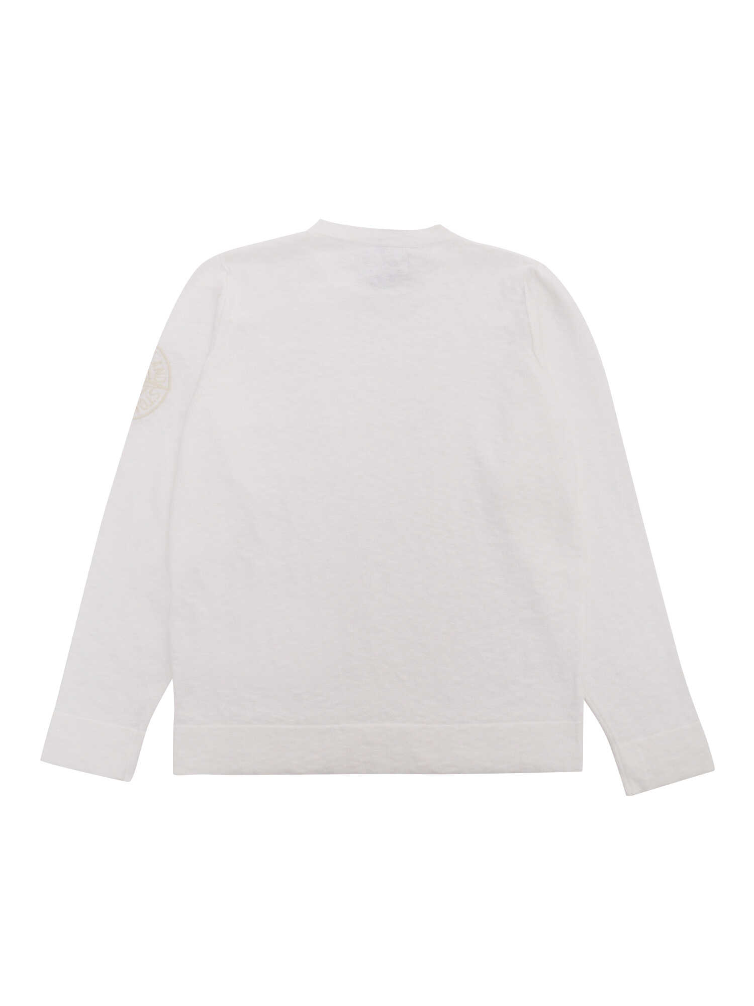 Stone Island white children's sweater in cotton blend with logo embroidered on the sleeve.