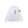 White cotton sweatshirt for children with resealable zip pocket on the front and contrasting logo plate on the sleeve.