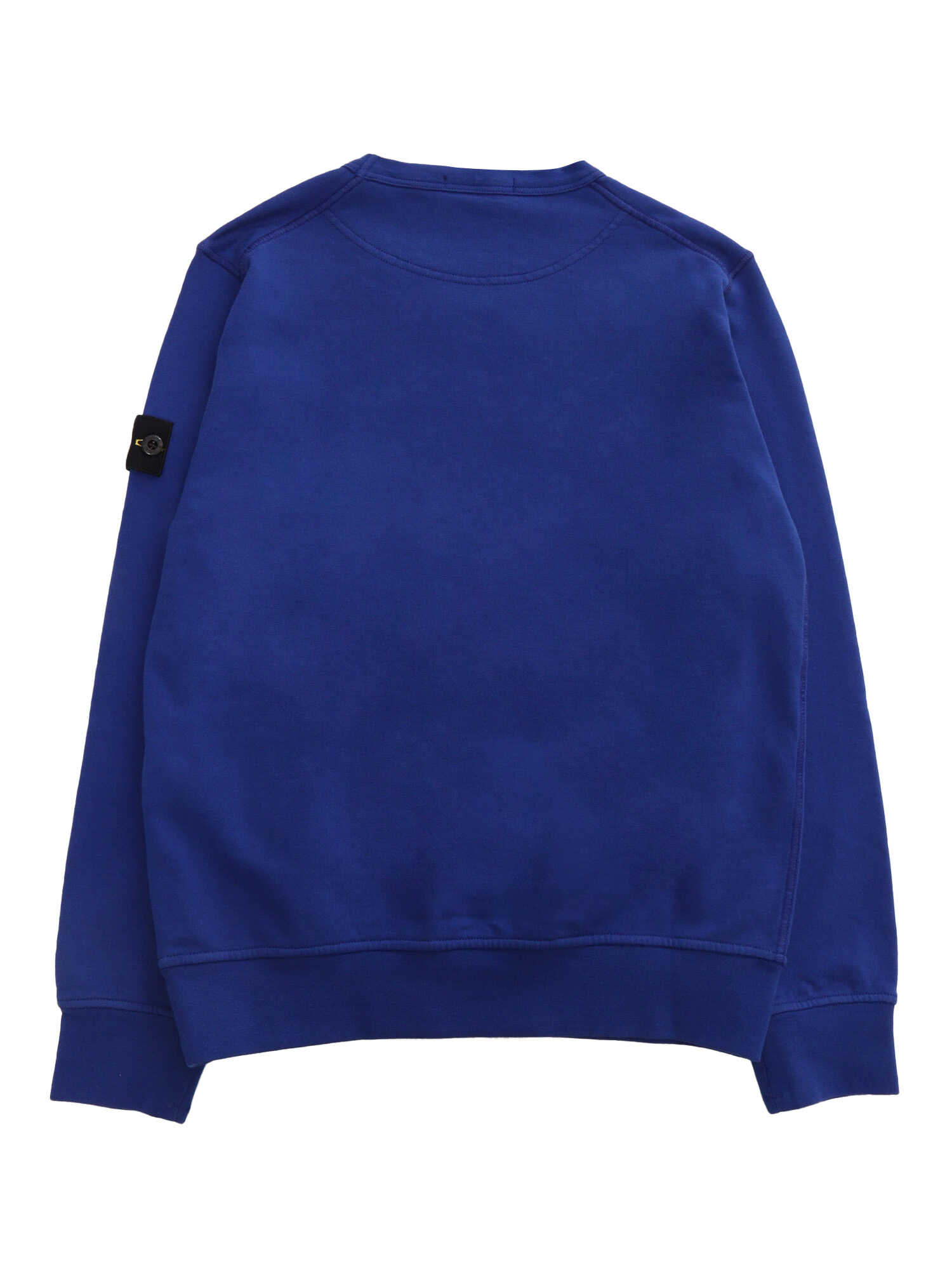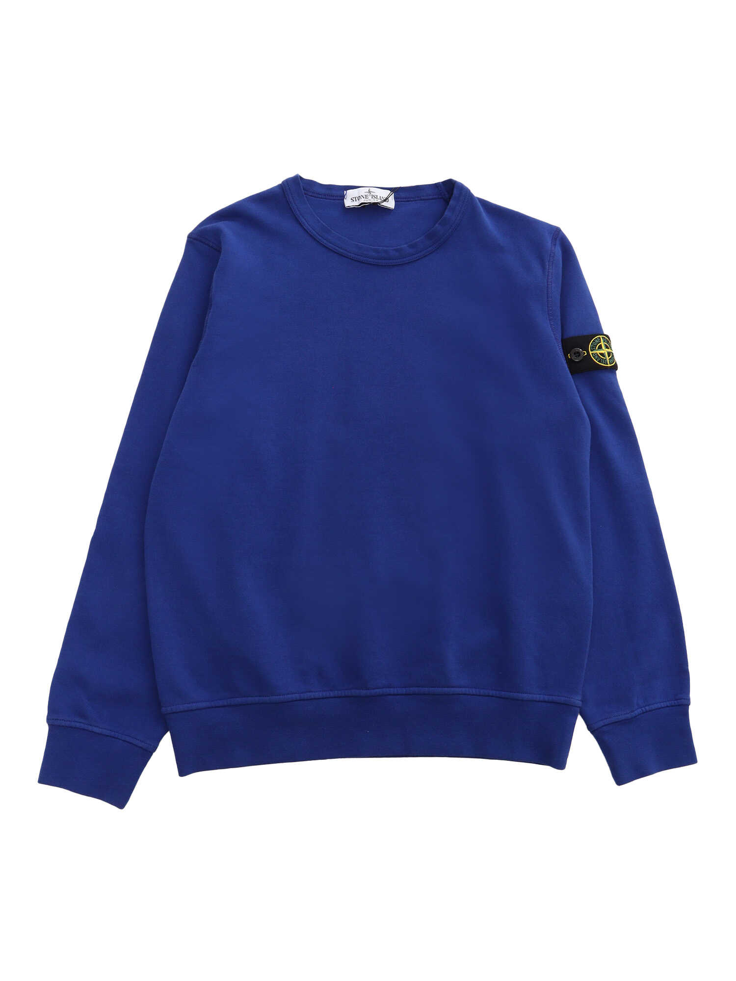 Electric blue cotton sweatshirt for children with edged crew neckline, logo plate on the sleeve.